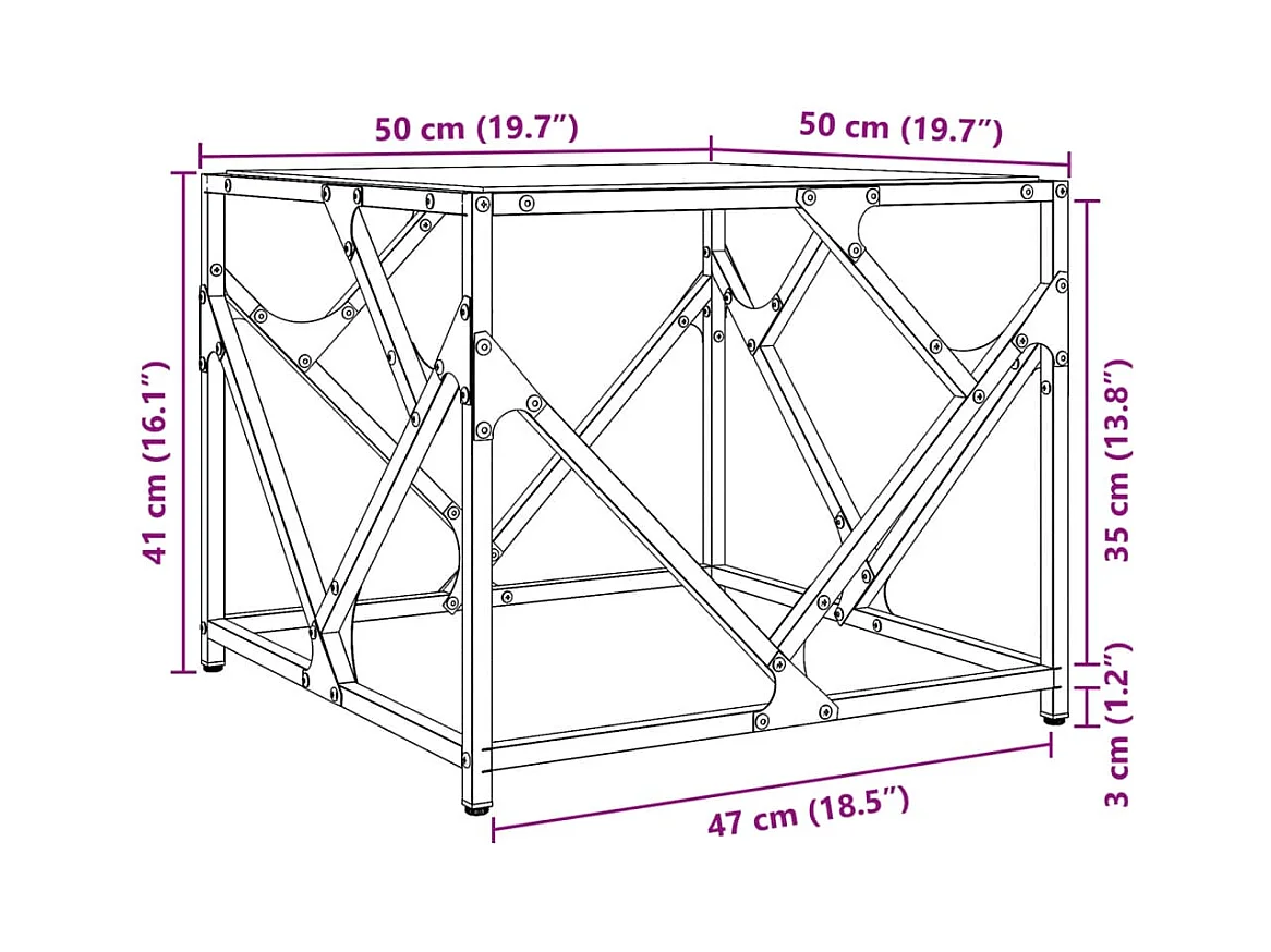 Table basse salon-Table d'appoint-dessus en verre transparent 50x50x40 cm acier SHL34784