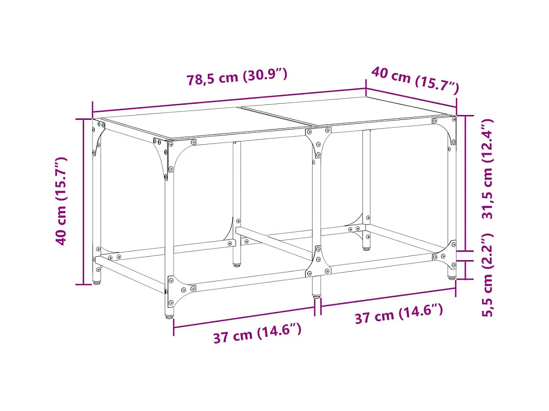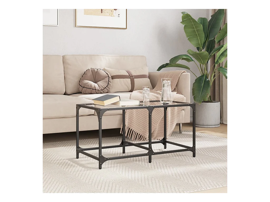 Table basse avec dessus en verre transparent 78,5x40x40cm acier