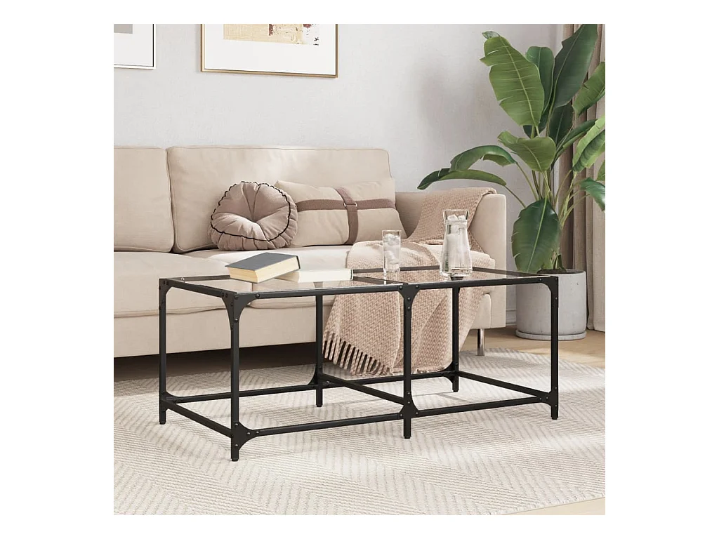 Table basse avec dessus en verre transparent 98,5x50x40cm acier