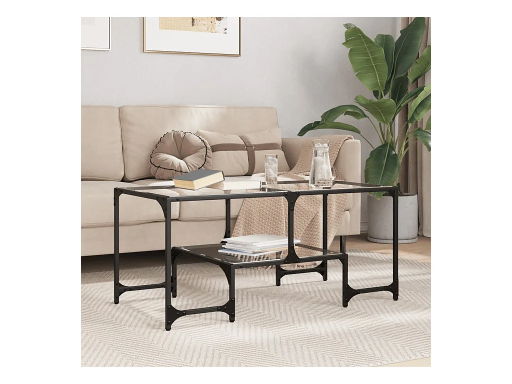 Table basse avec dessus en verre transparent 98,5x50x45cm acier