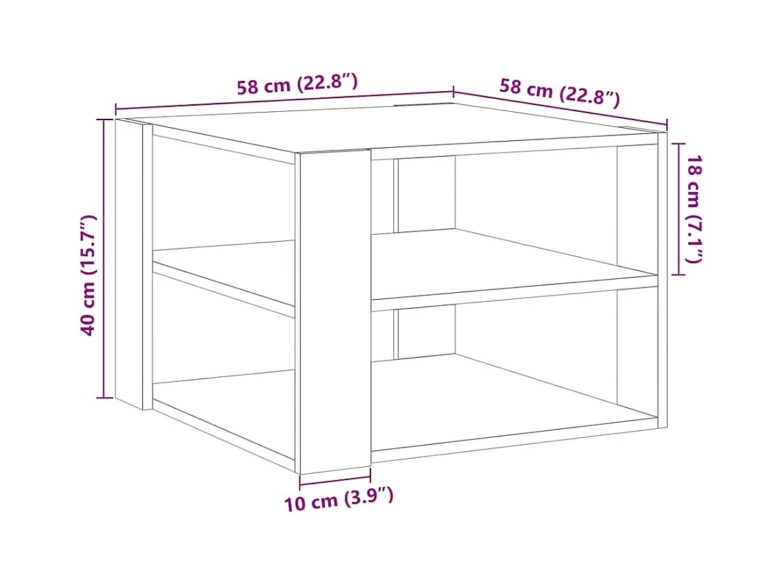 Table basse salon-Table d'appoint chêne artisanal 58x58x40 cm bois d'ingénierie SHL12394