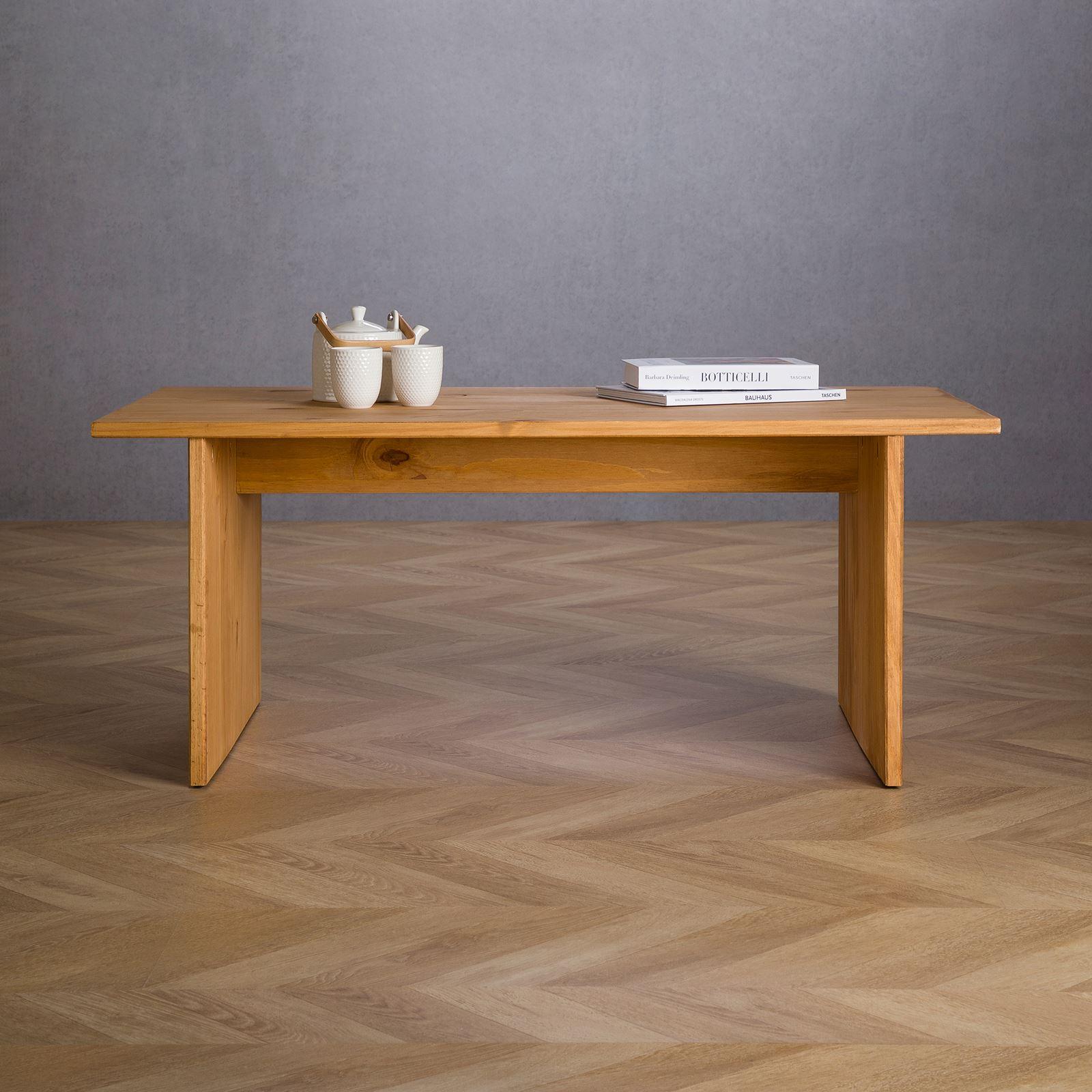 Table basse SALTO rectangulaire pour salon en bois massif finition laquée, 110x45 cm, élégante et minimaliste, pieds en bois