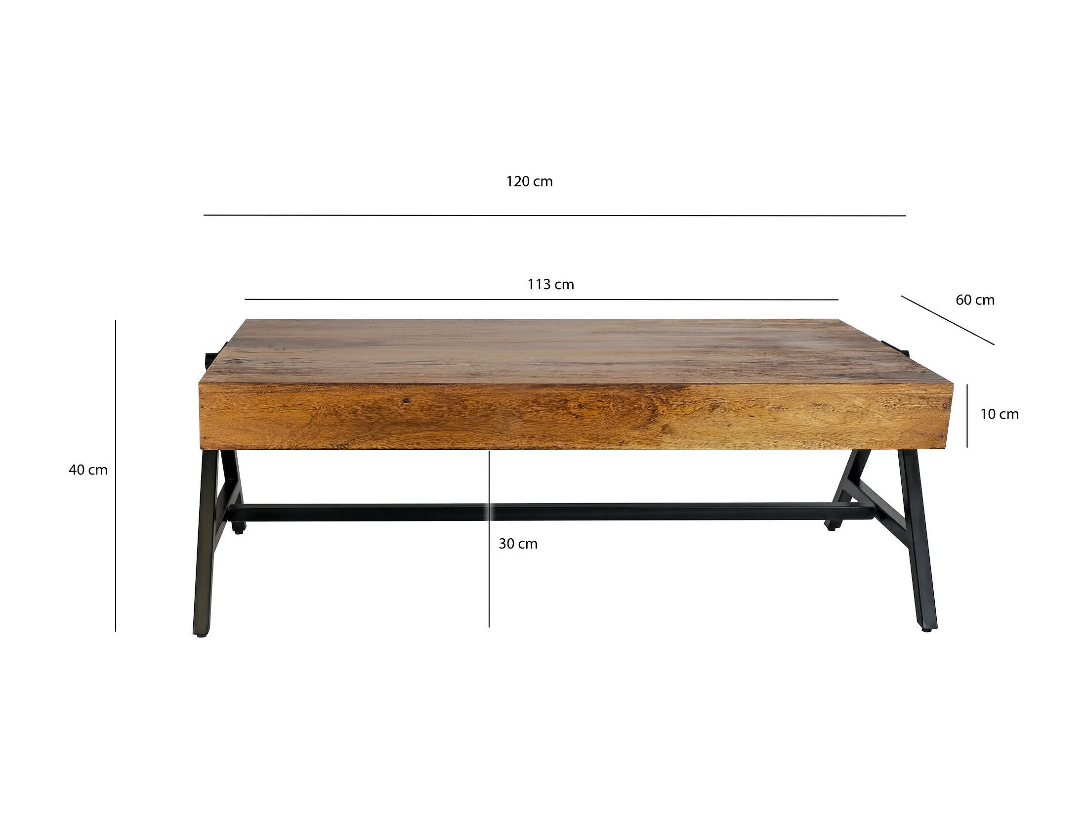 Table Basse Bois Massif Métal 120x40x60cm Table d'appoint Table de salon