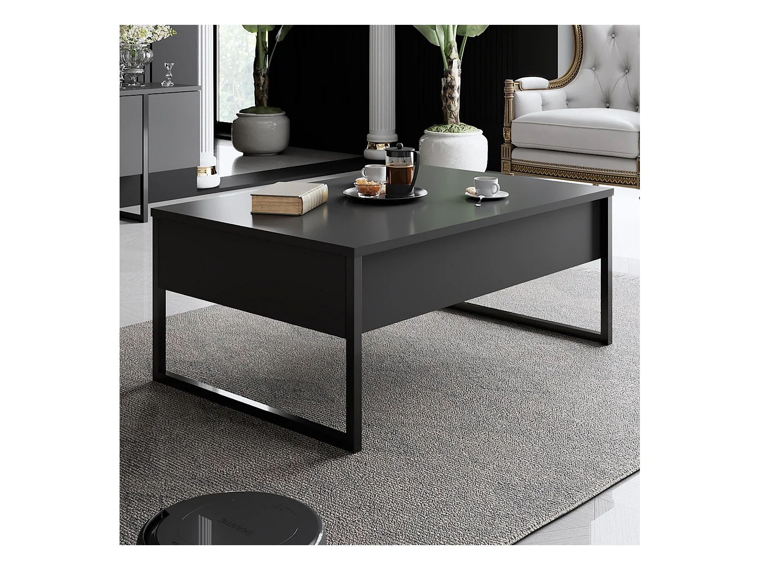 Table basse Sibylle 60x90cm Métal Noir et Bois Anthracite