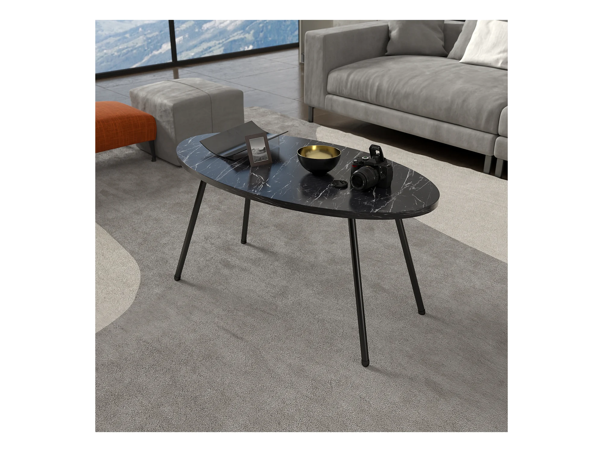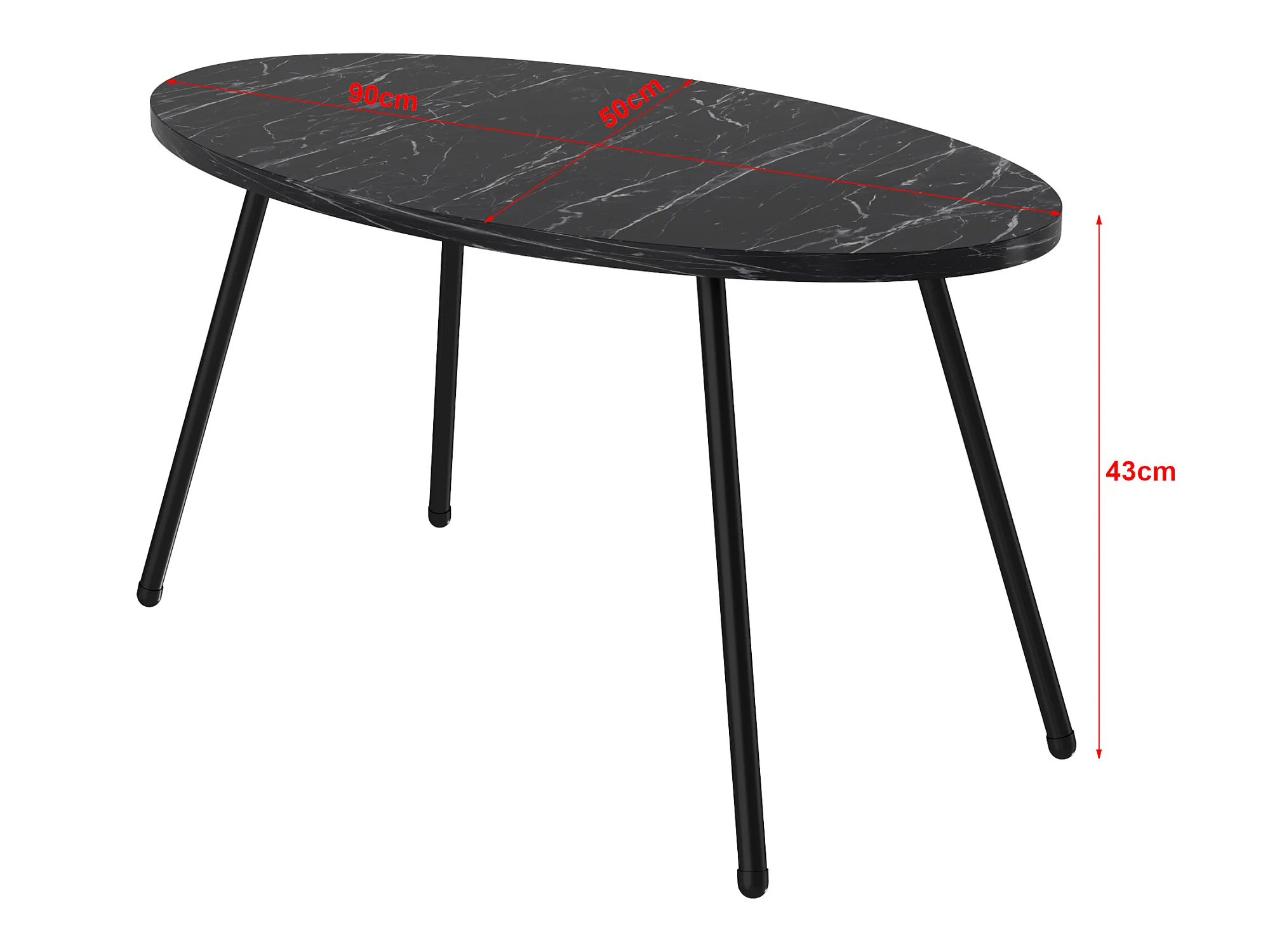 Table basse Skærbæk ovale 43 x 90 x 50 cm marbre noir [en.casa]