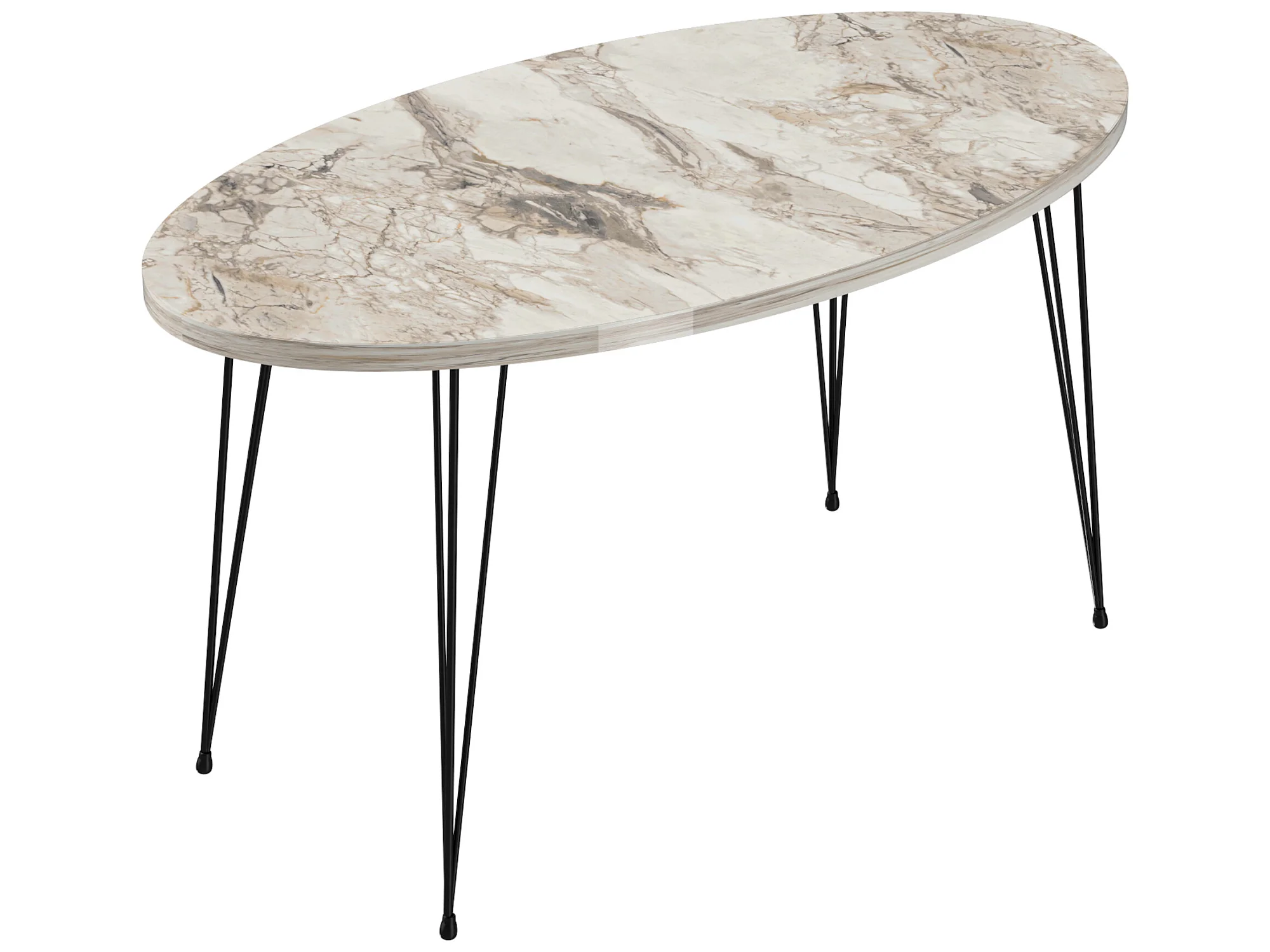 Table basse Skævinge ovale 43 x 90 x 50 cm marbre blanc noir [en.casa]