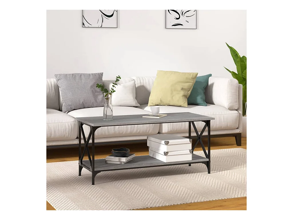 Table basse sonoma gris 100x50x45 bois d'ingénierie et métal