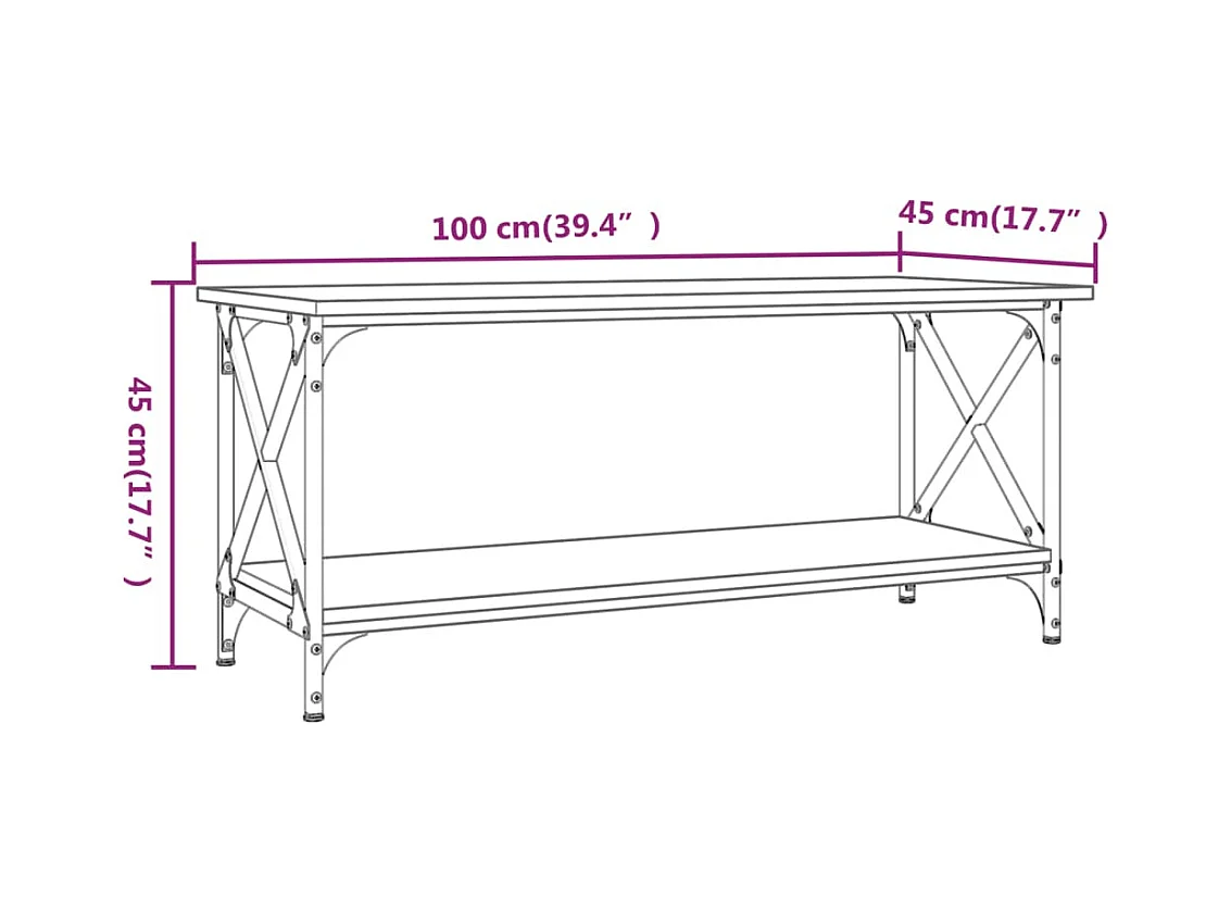 Table basse Sonoma gris 100x45x45 Bois d'ingénierie et fer