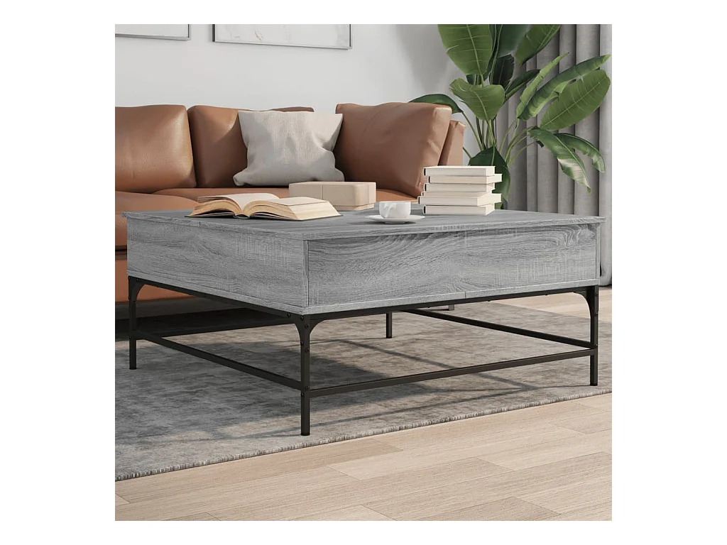 Table basse sonoma gris 95x95x45 bois d'ingénierie et métal