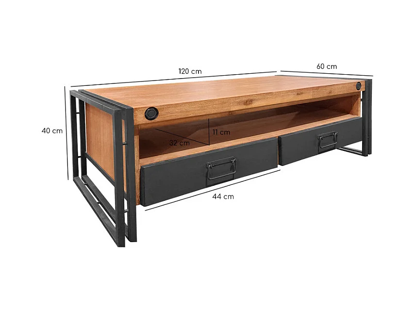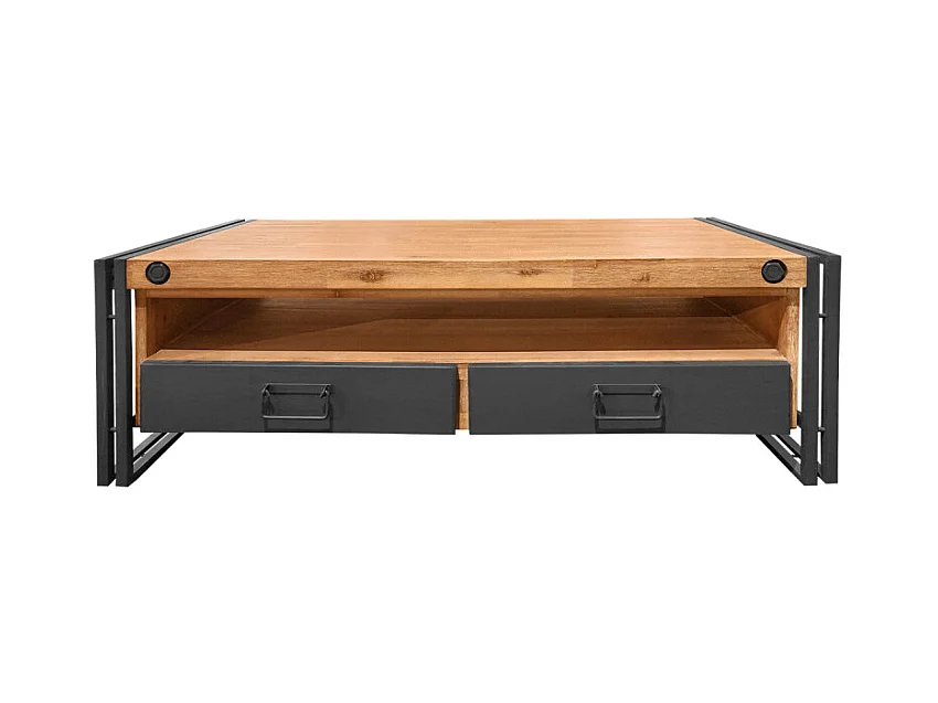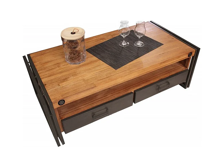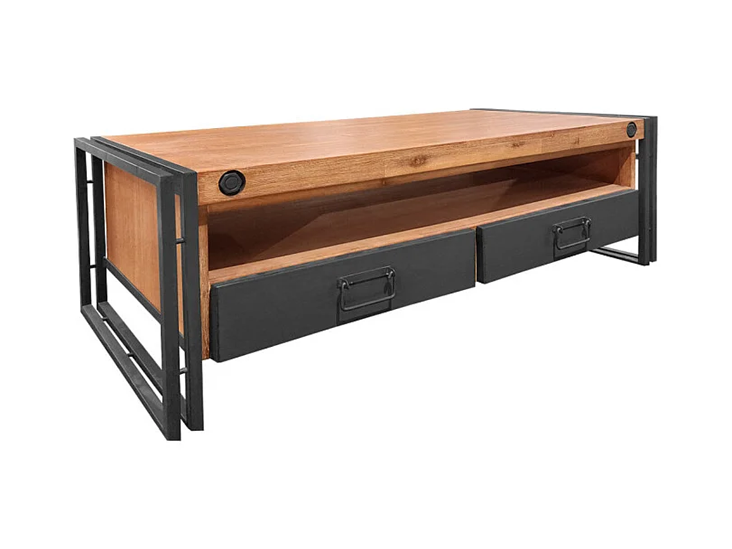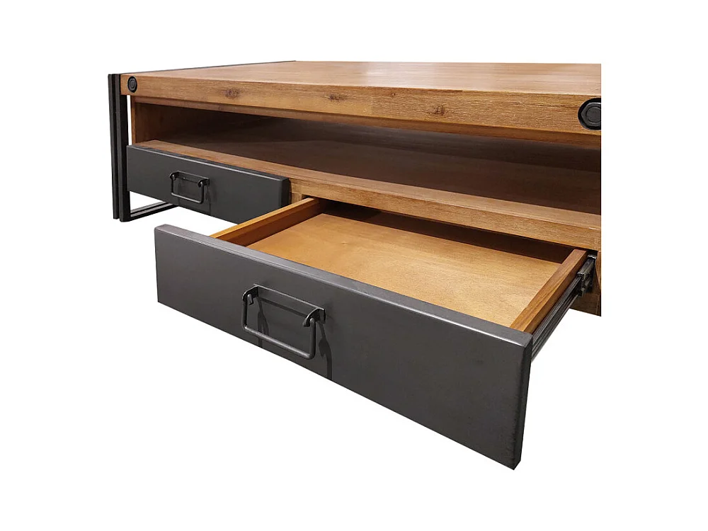 Table basse 120 cm 2 tiroirs 1 niche bois acacia et métal - WORKSHOP