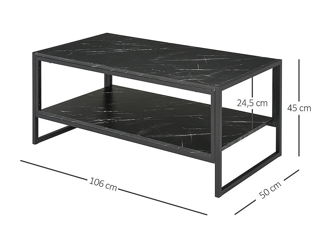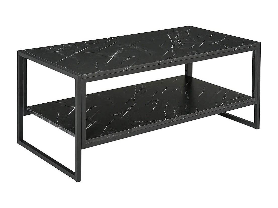 OTELLO - Table Basse Rectangulaire Noir Mat Plateau Aspect Bois Antik