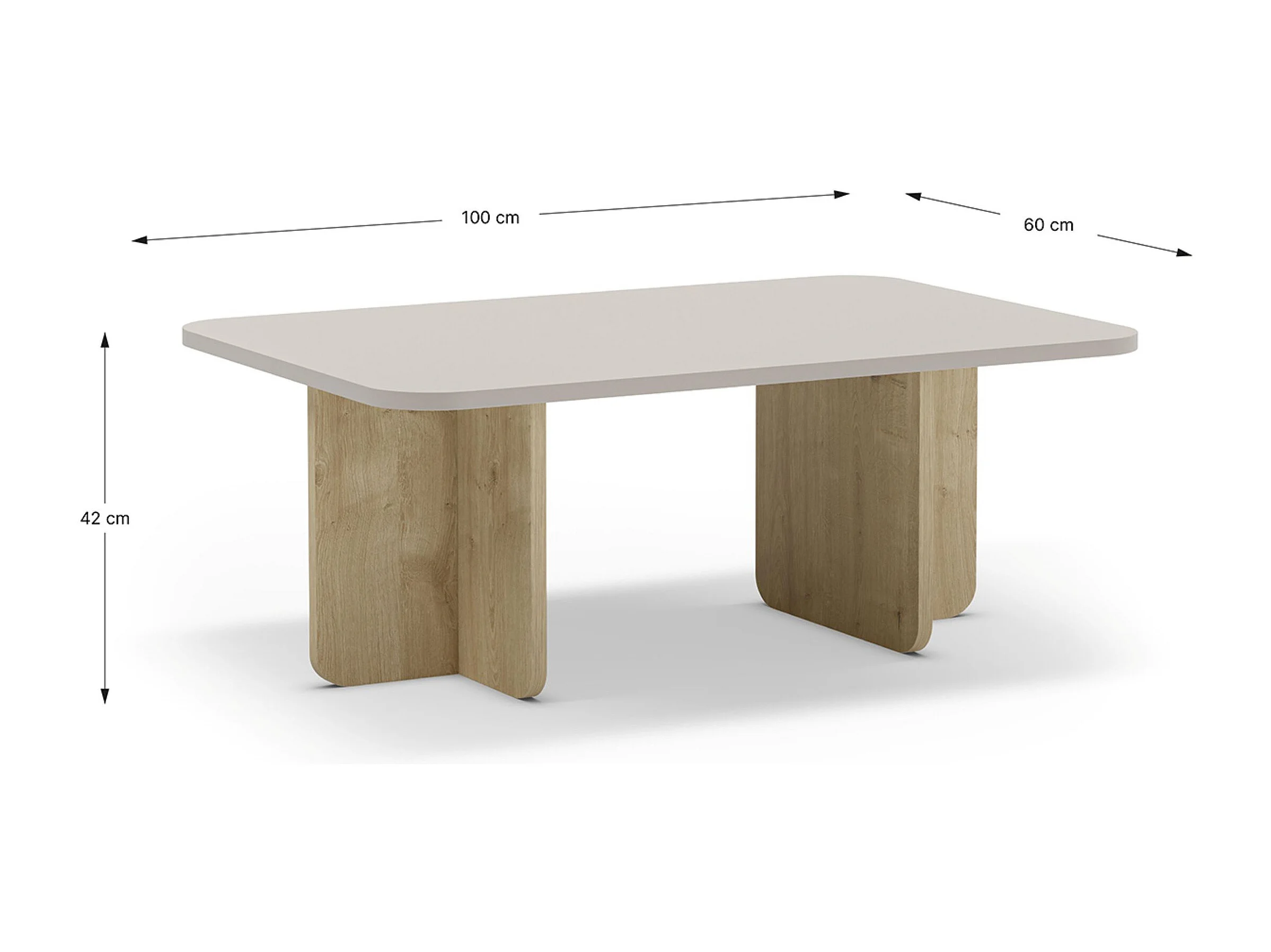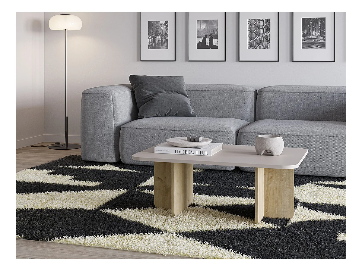 Table basse, table de salon aspect bois coloris crème - Longueur 100 x Profondeur 60 x Hauteur 42 cm