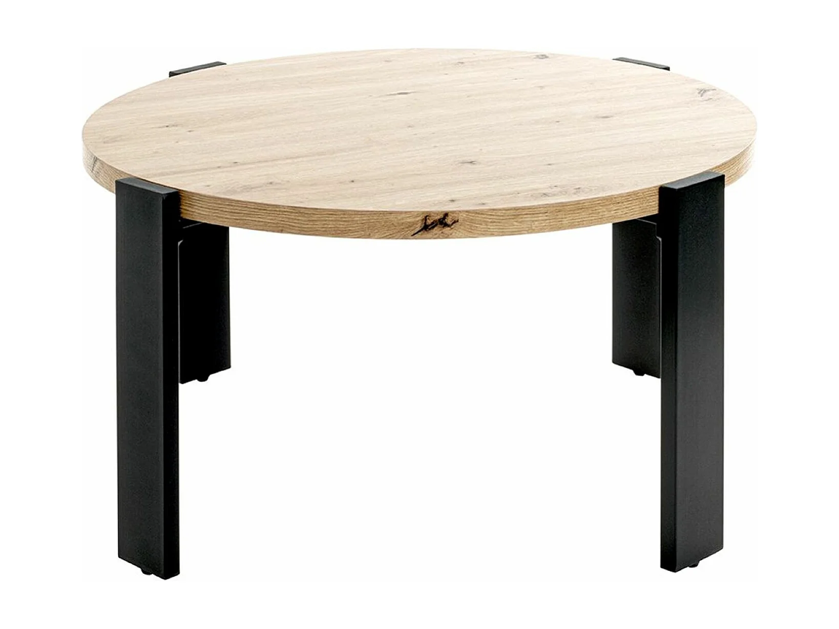 Table basse, Table de salon en bois chêne et métal noir - diamètre 75 x hauteur 42 cm