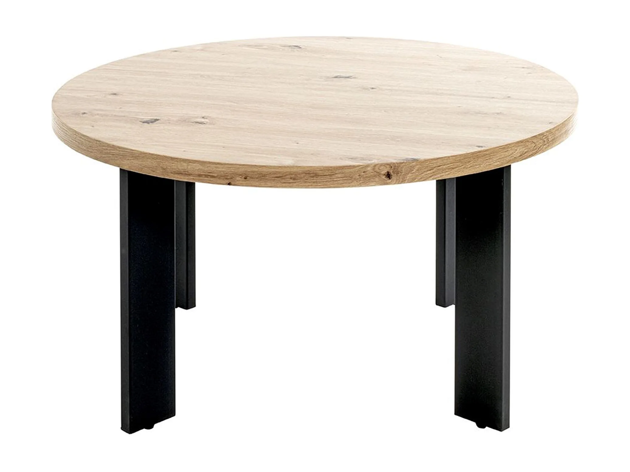 Table basse, Table de salon en bois coloris chêne et métal noir - diamètre 75 x hauteur 42 cm
