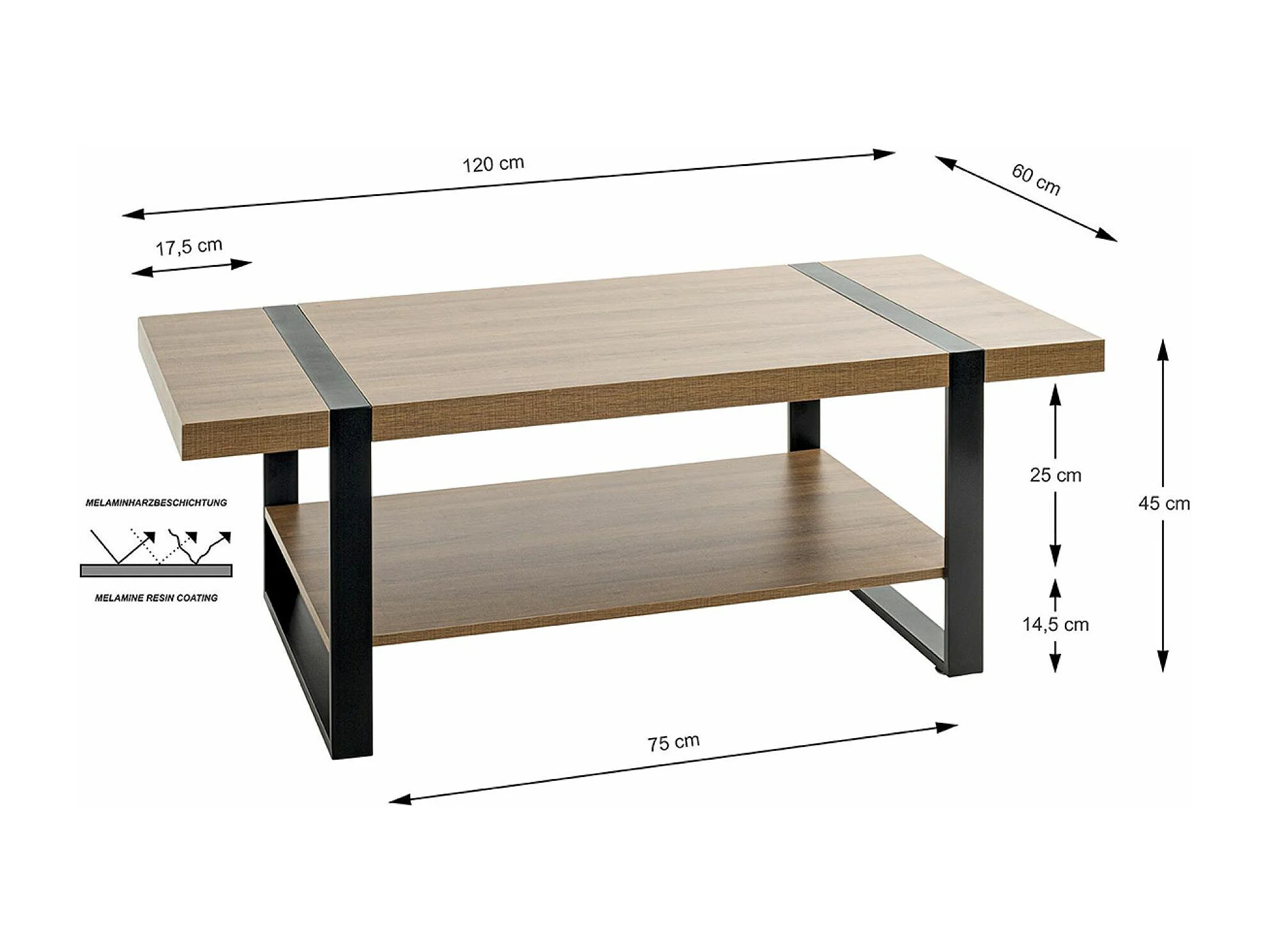 Table basse, Table de salon en bois coloris chêne et métal noir -longueur 120 x profondeur 60 x hauteur 45 cm