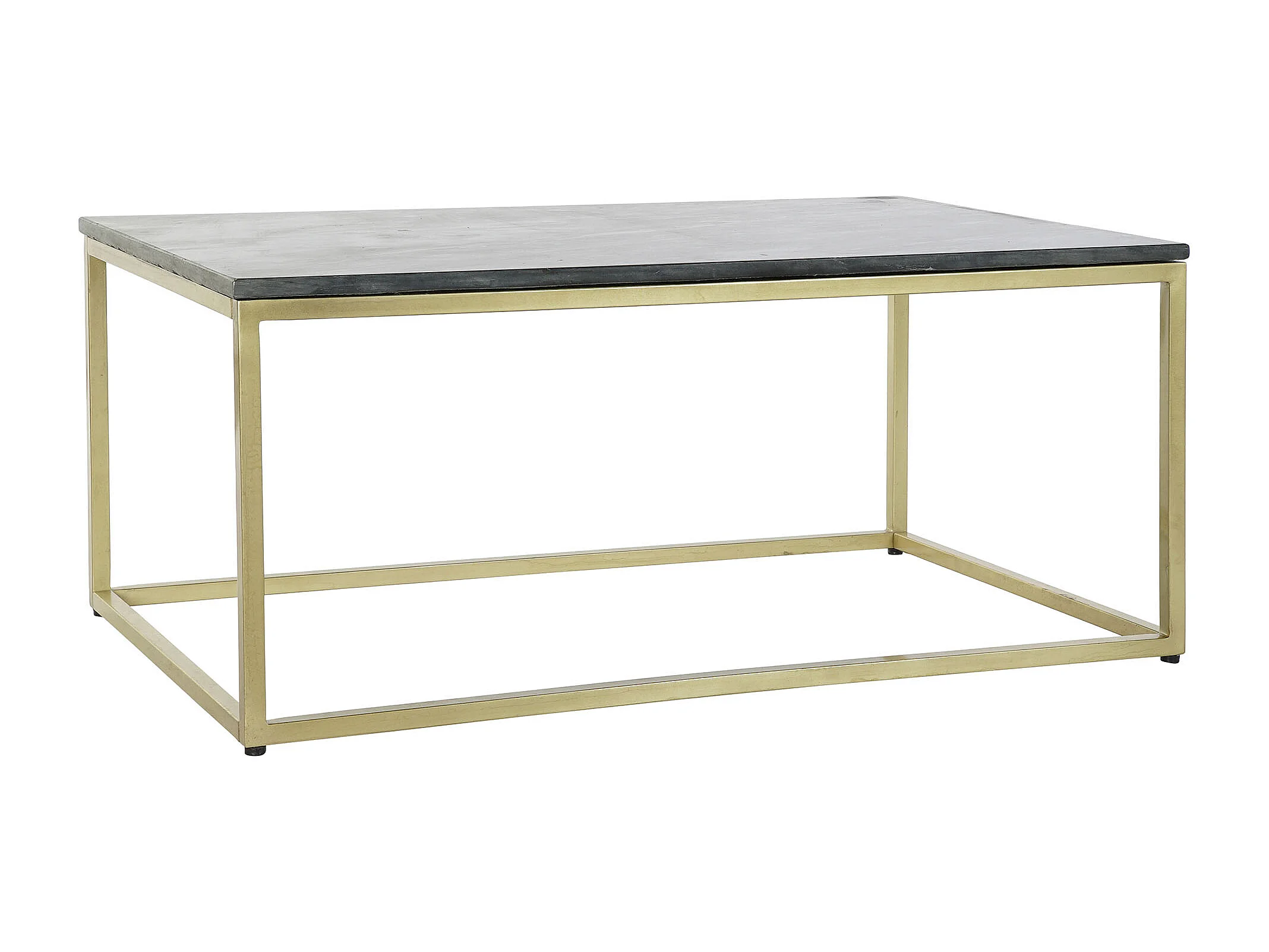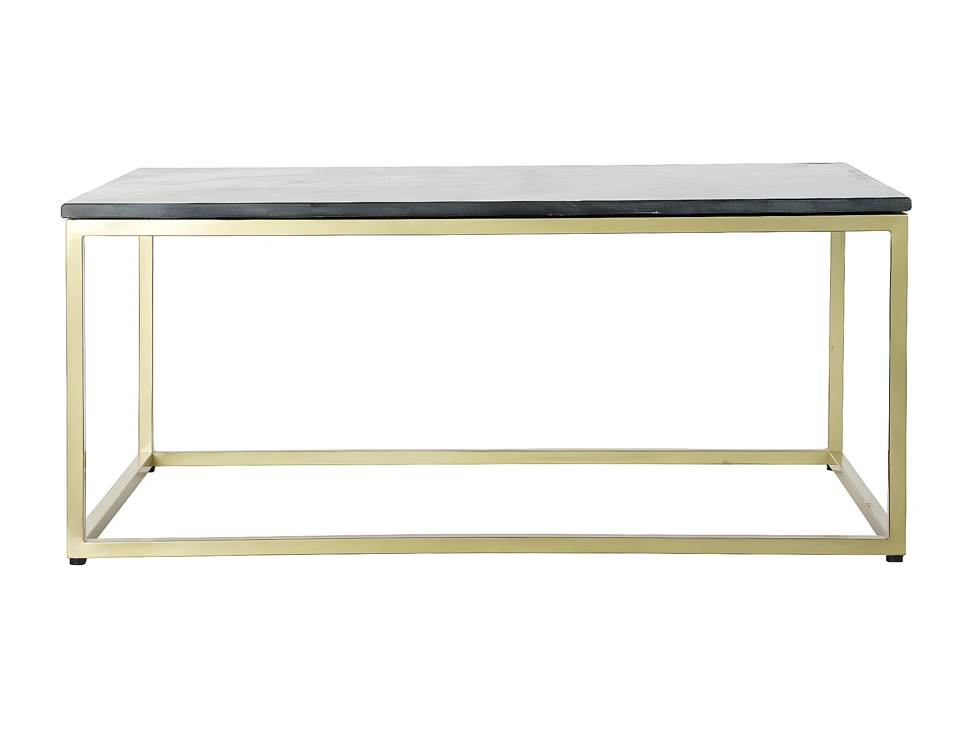 Table basse, table de salon rectangulaire en fer doré et marbre noir - longueur 100 x profondeur 61 x Hauteur 43 cm