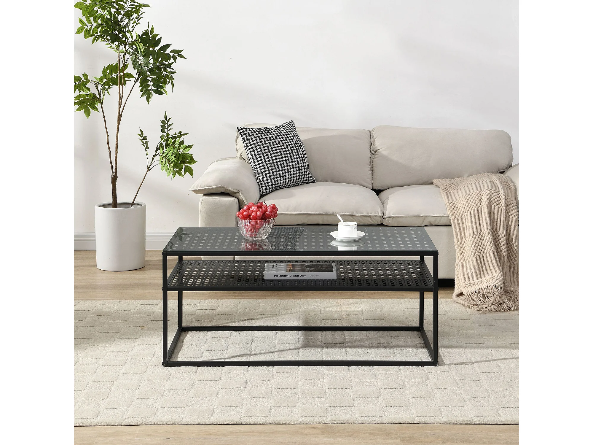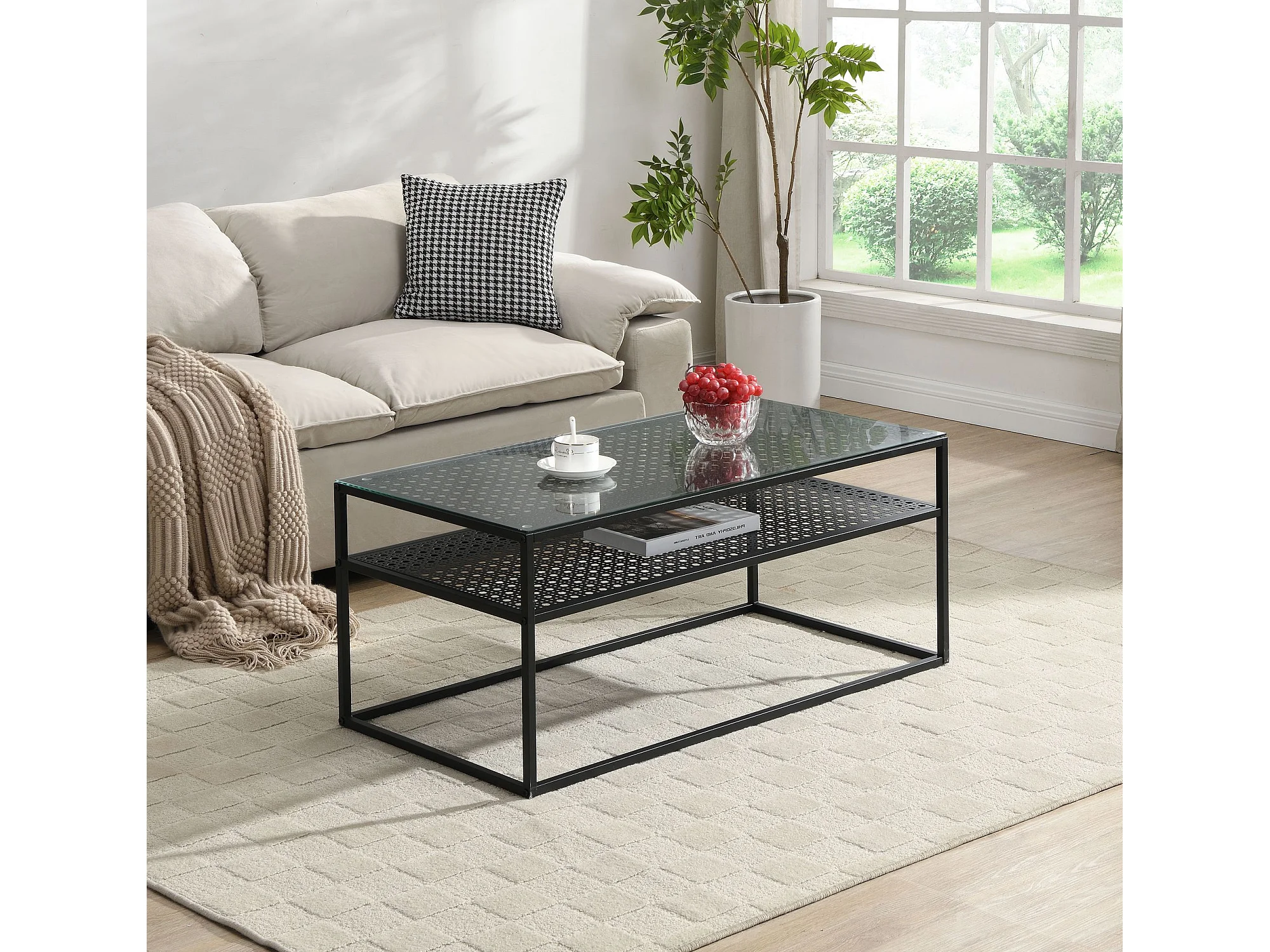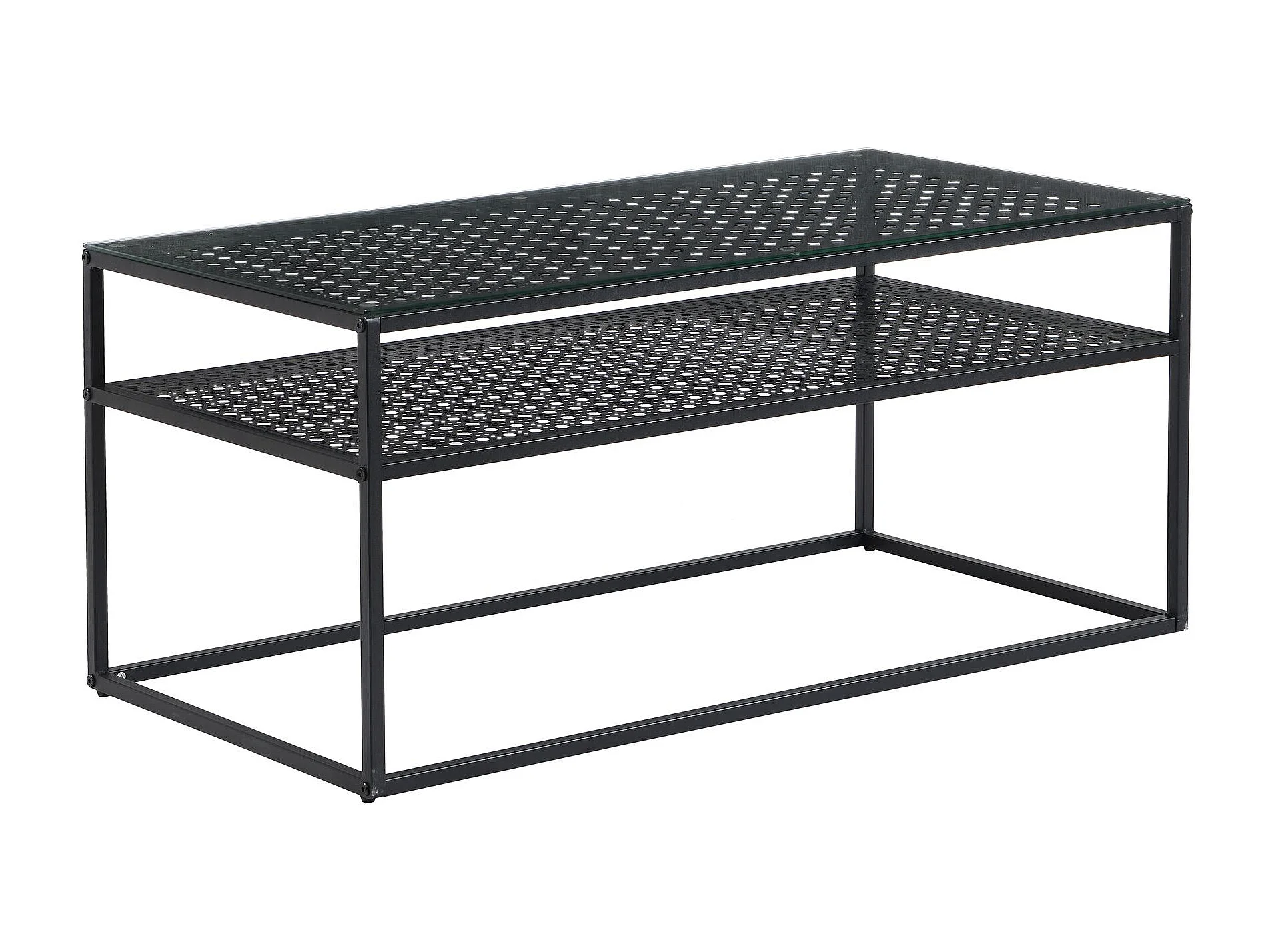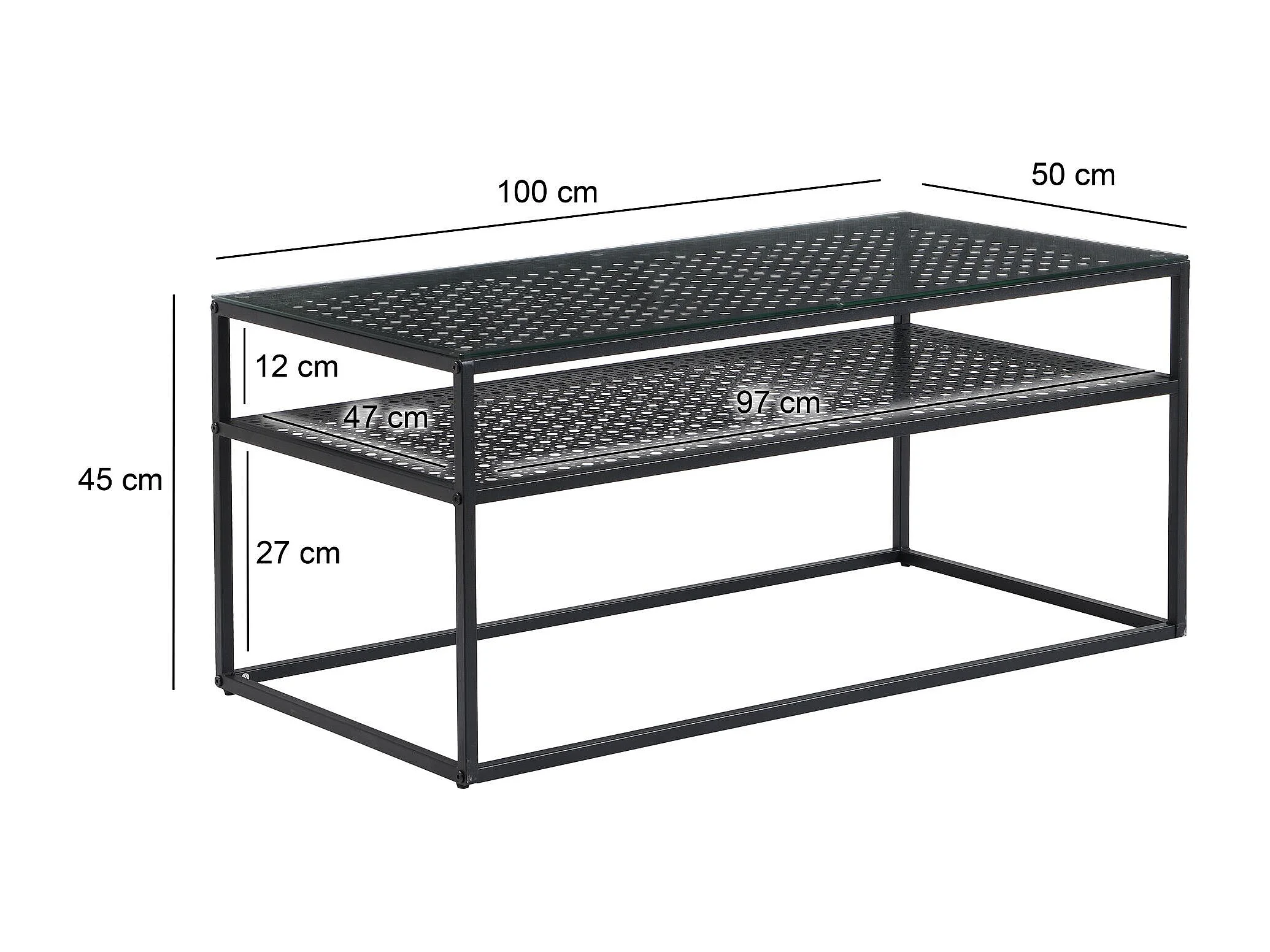 Table basse table de salon rectangulaire verre 100 cm étagère en métal moderne