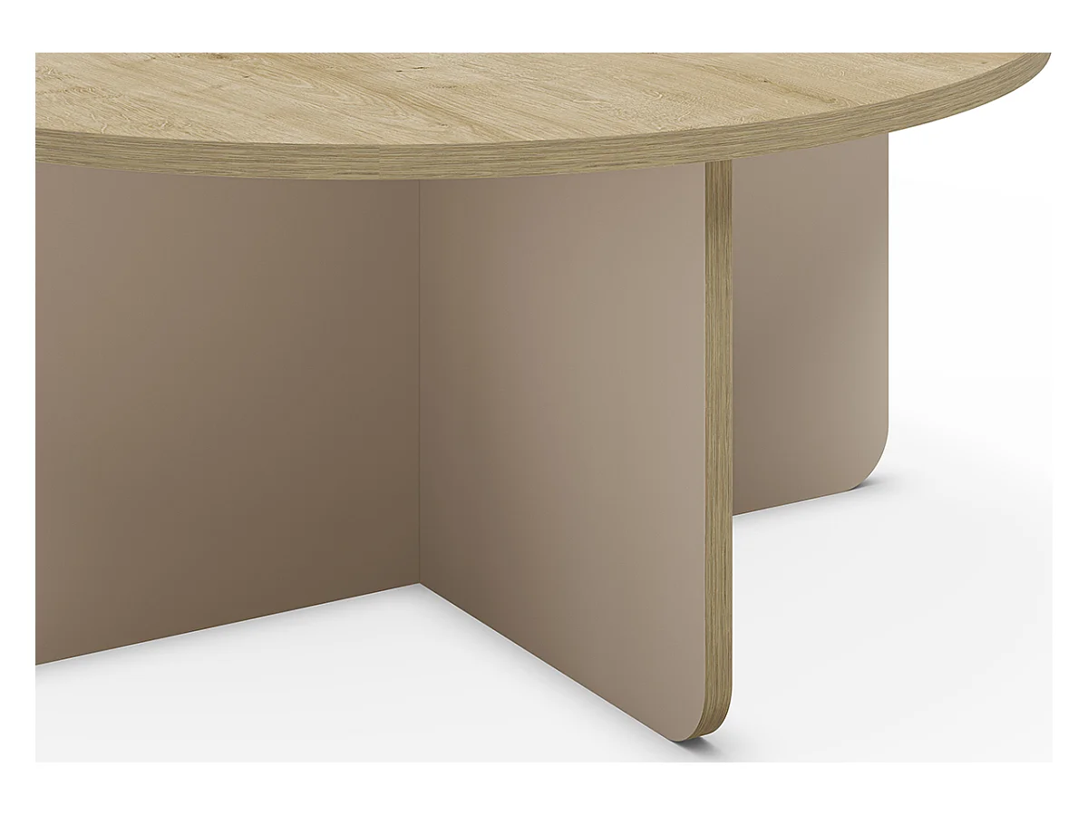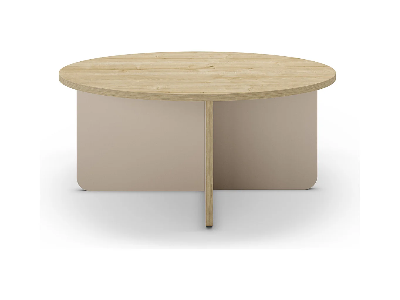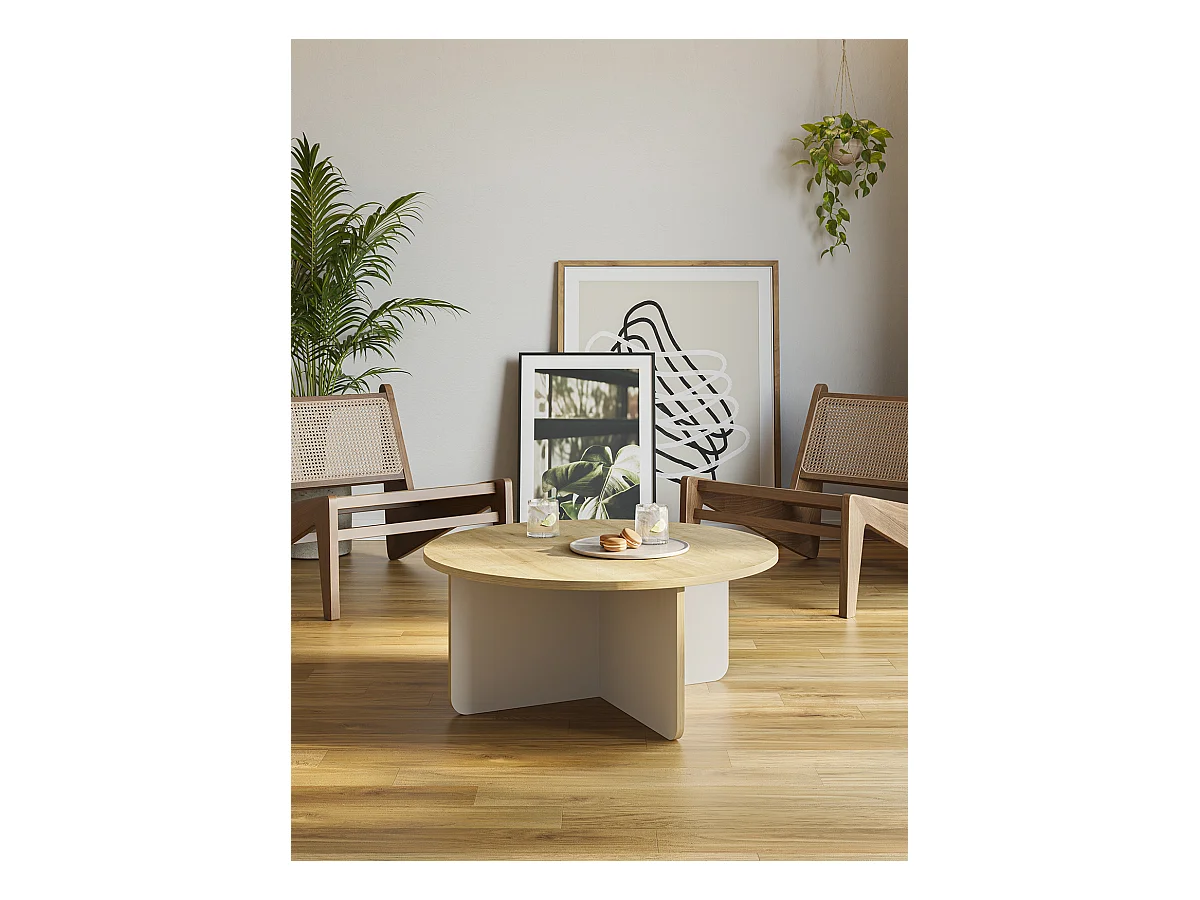 Table basse, table de salon ronde aspect bois coloris chêne, pieds coloris crème - diamètre 80 x Hauteur 38 cm