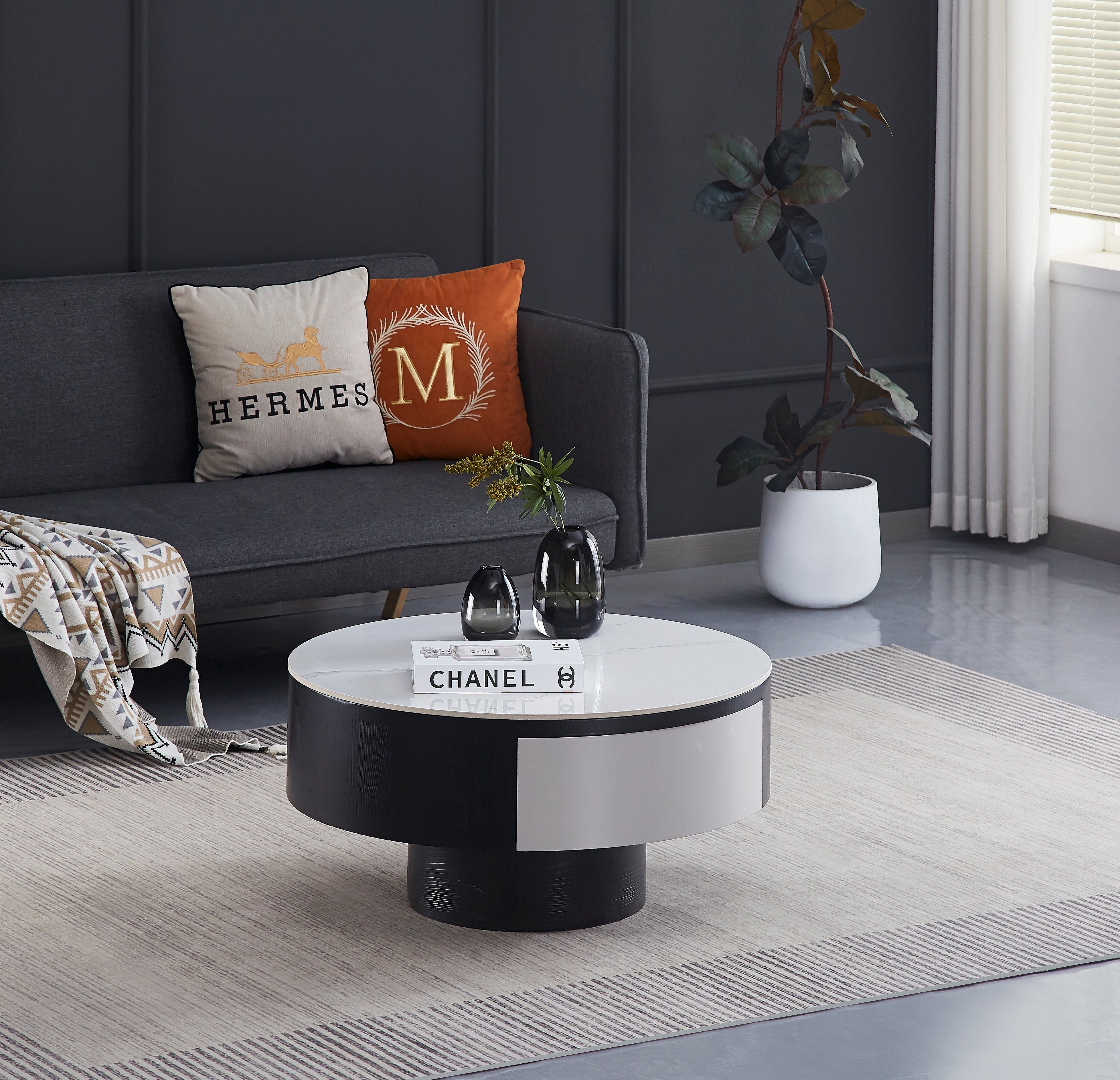 Table Basse TORNADO – Avec Tiroir – Noir & Blanc – 80x40 cm
