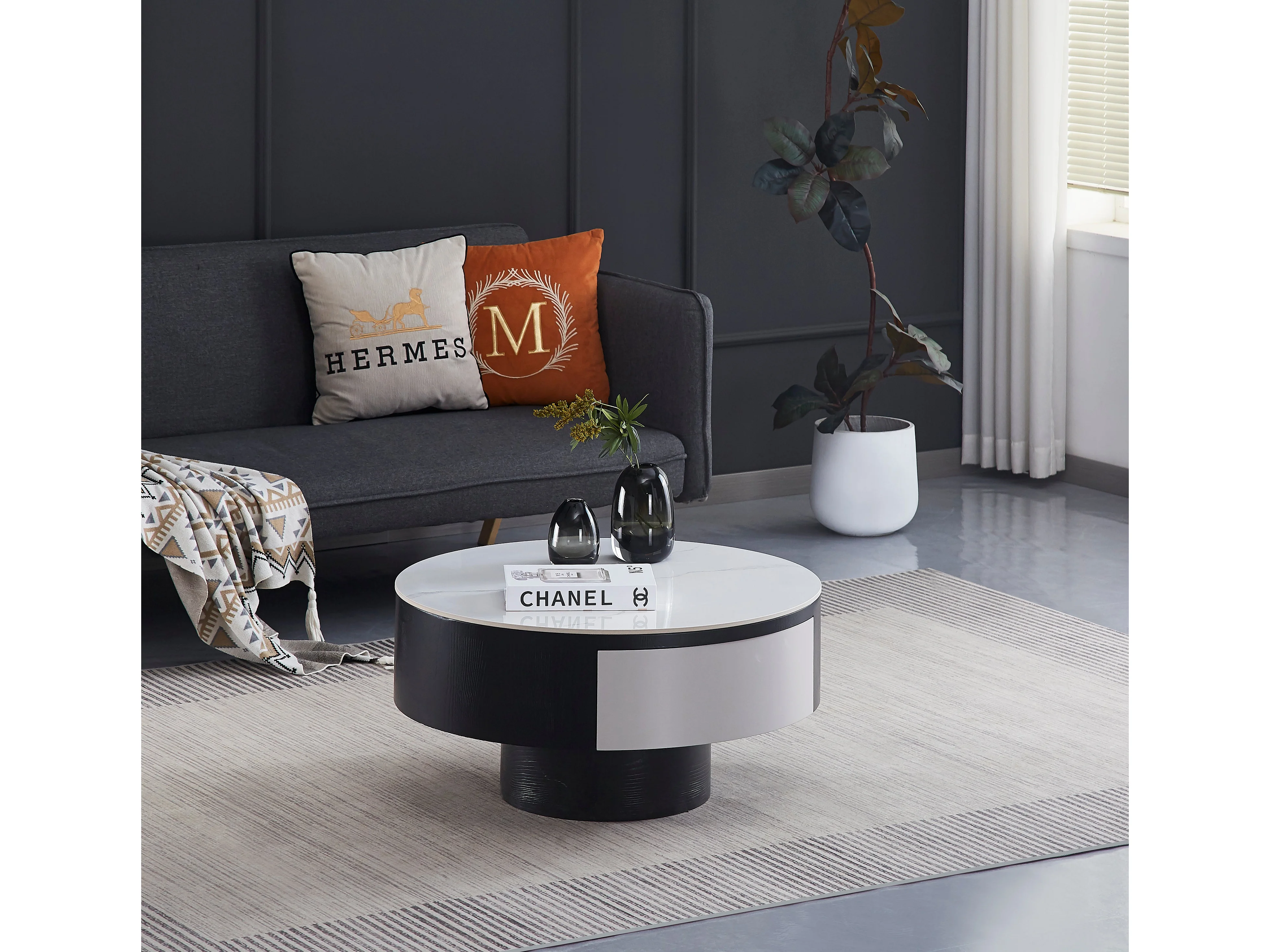 Table basse rectangulaire noir et blanc avec tiroir 80x40 cm – TORNADO