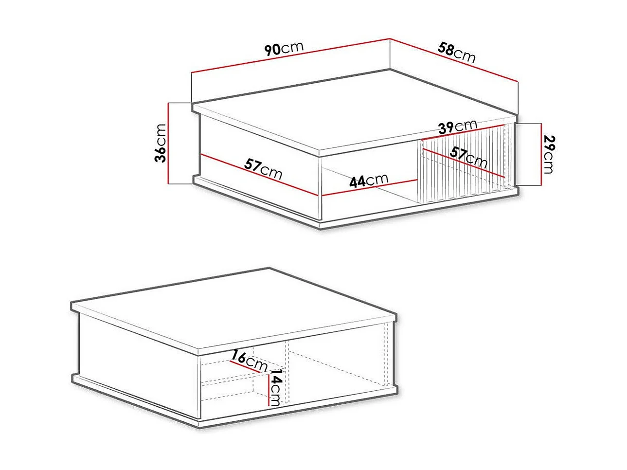 Table basse Venmava 107, Noir|Chêne Artisan, 36x58x90cm, Stratifié, Angulaire