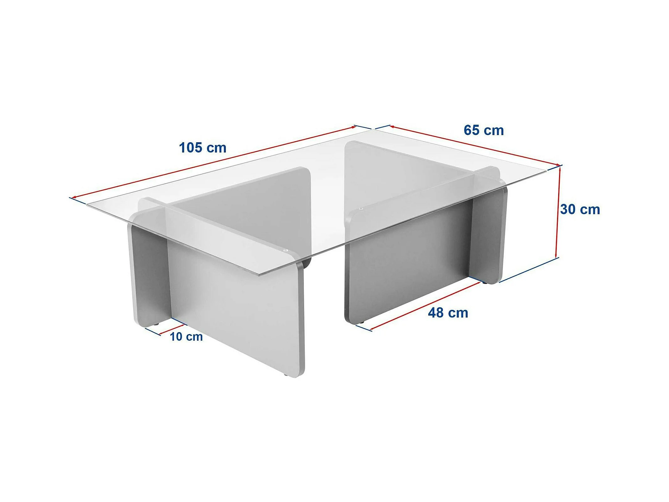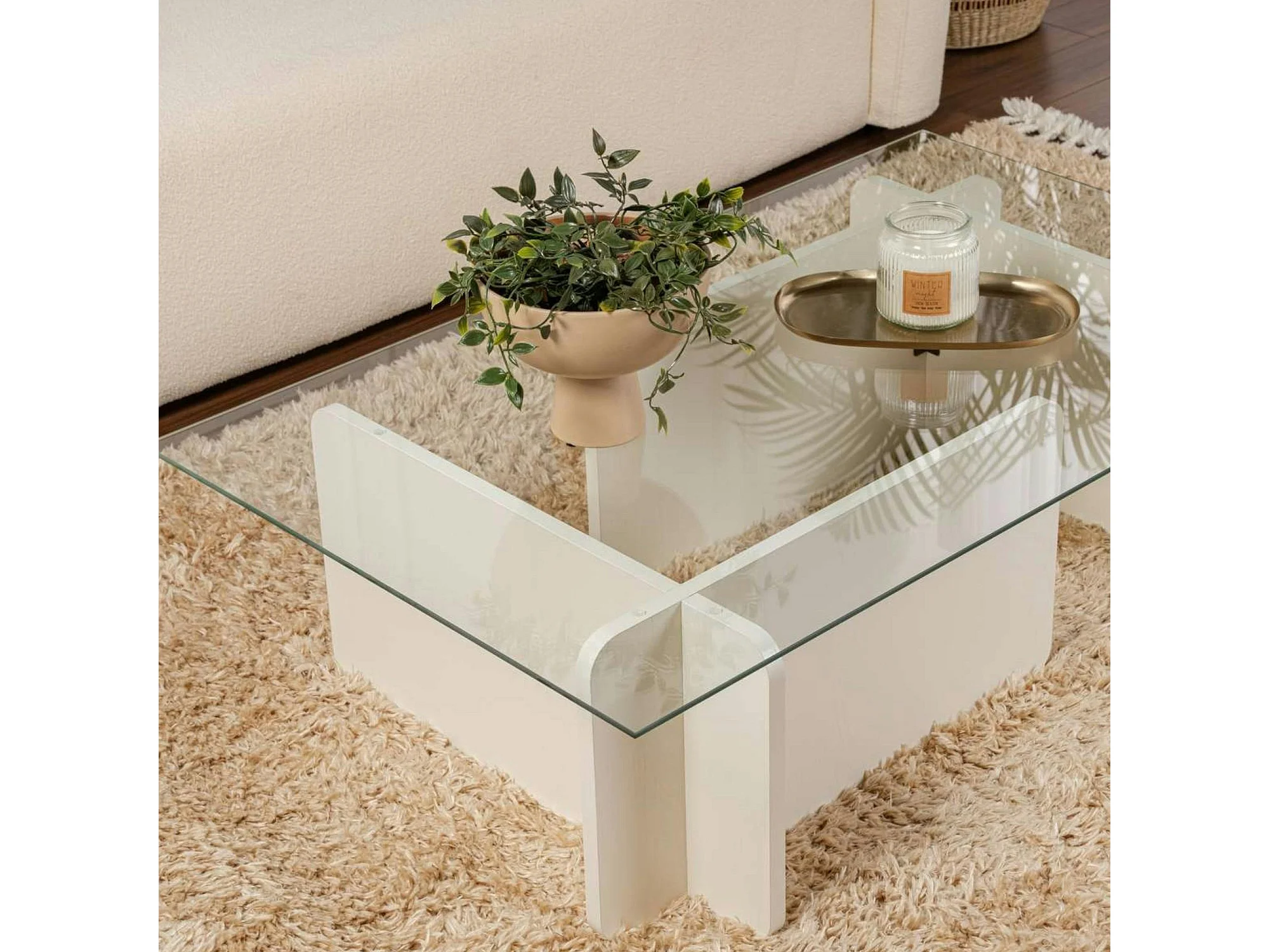 Table basse moderne Kerlo L105cm Bois Blanc et Verre trempé Transparent