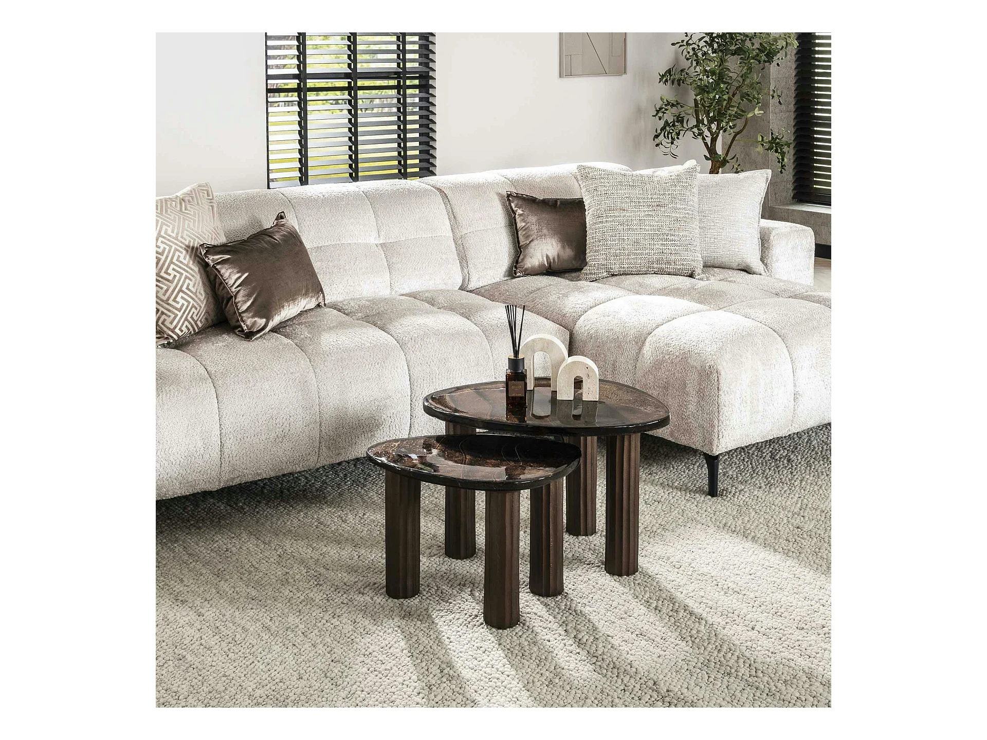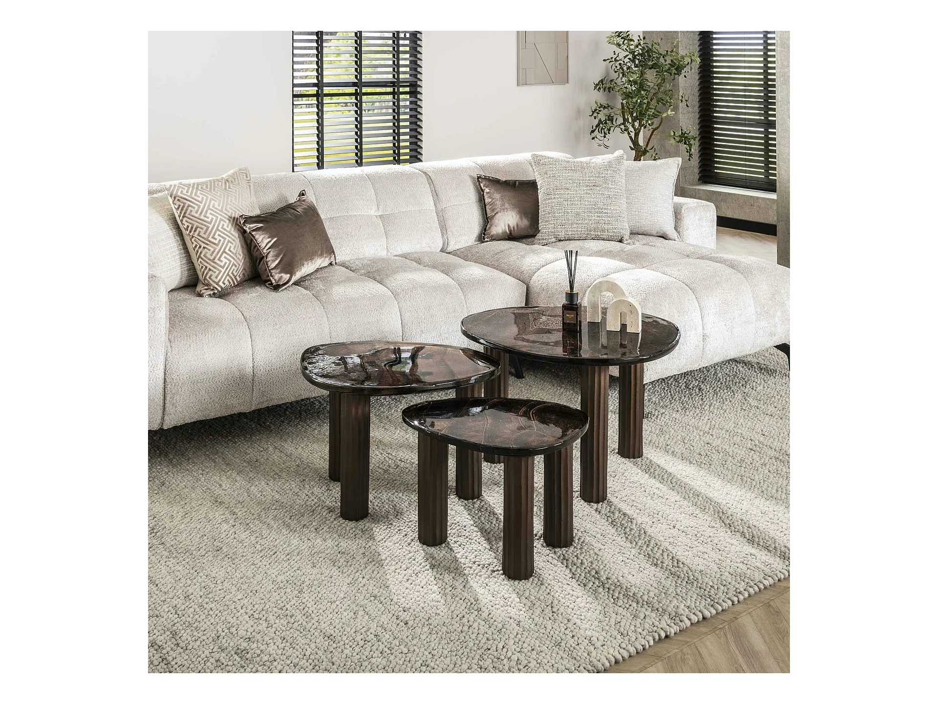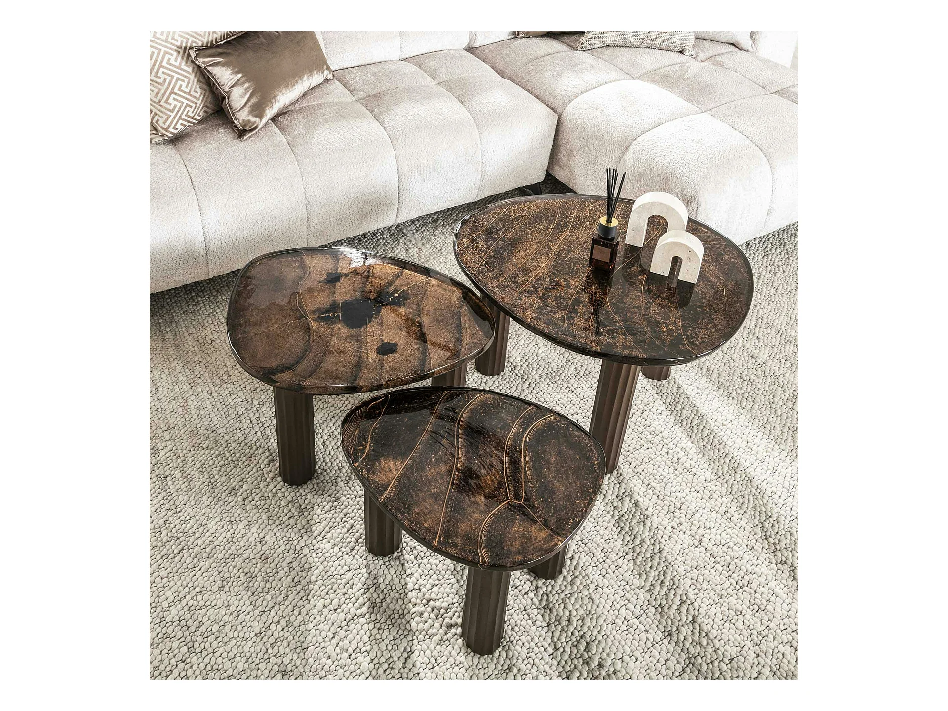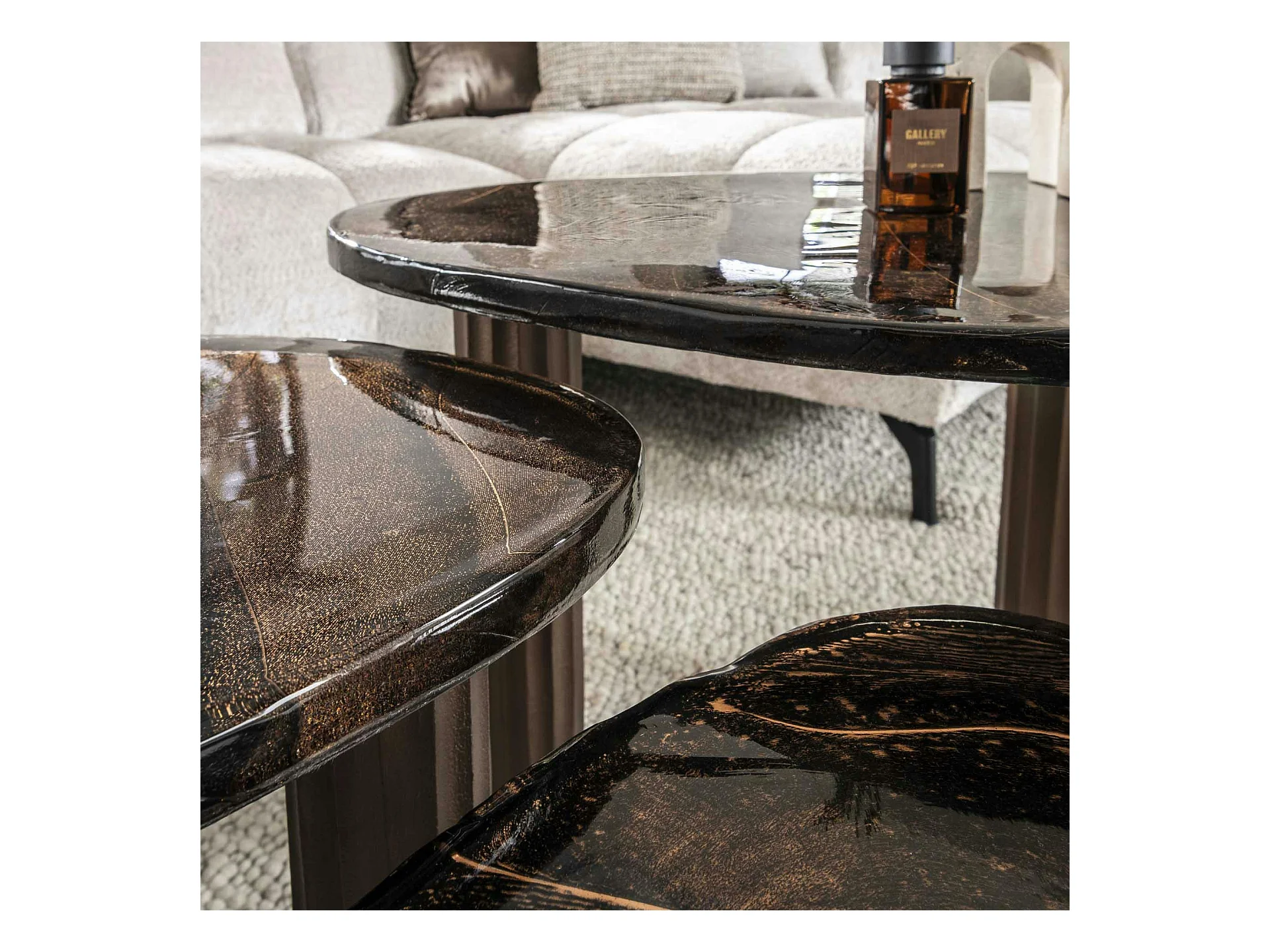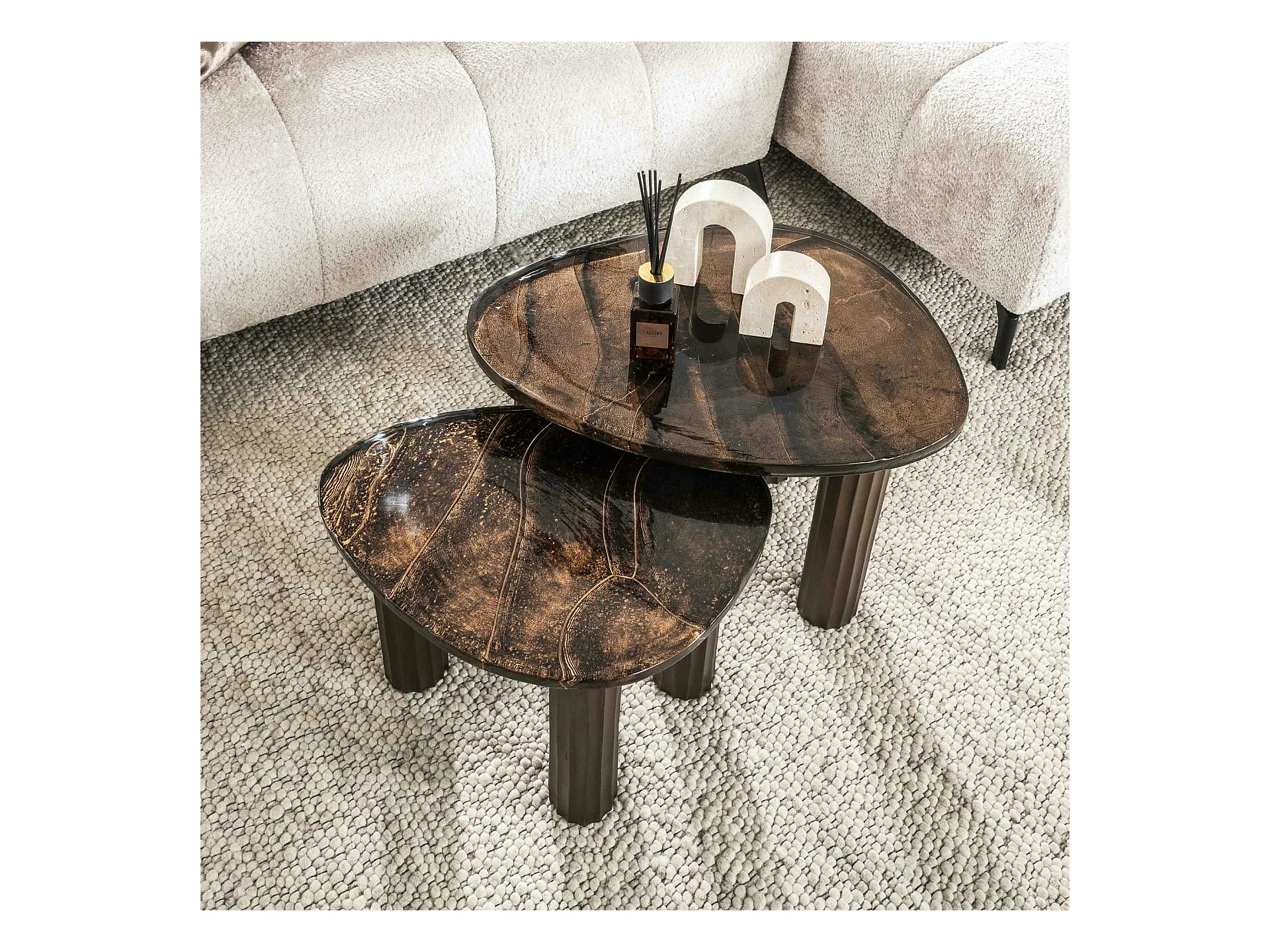 Table basse verre – finition cuivre antique, 35 cm LAGUNA