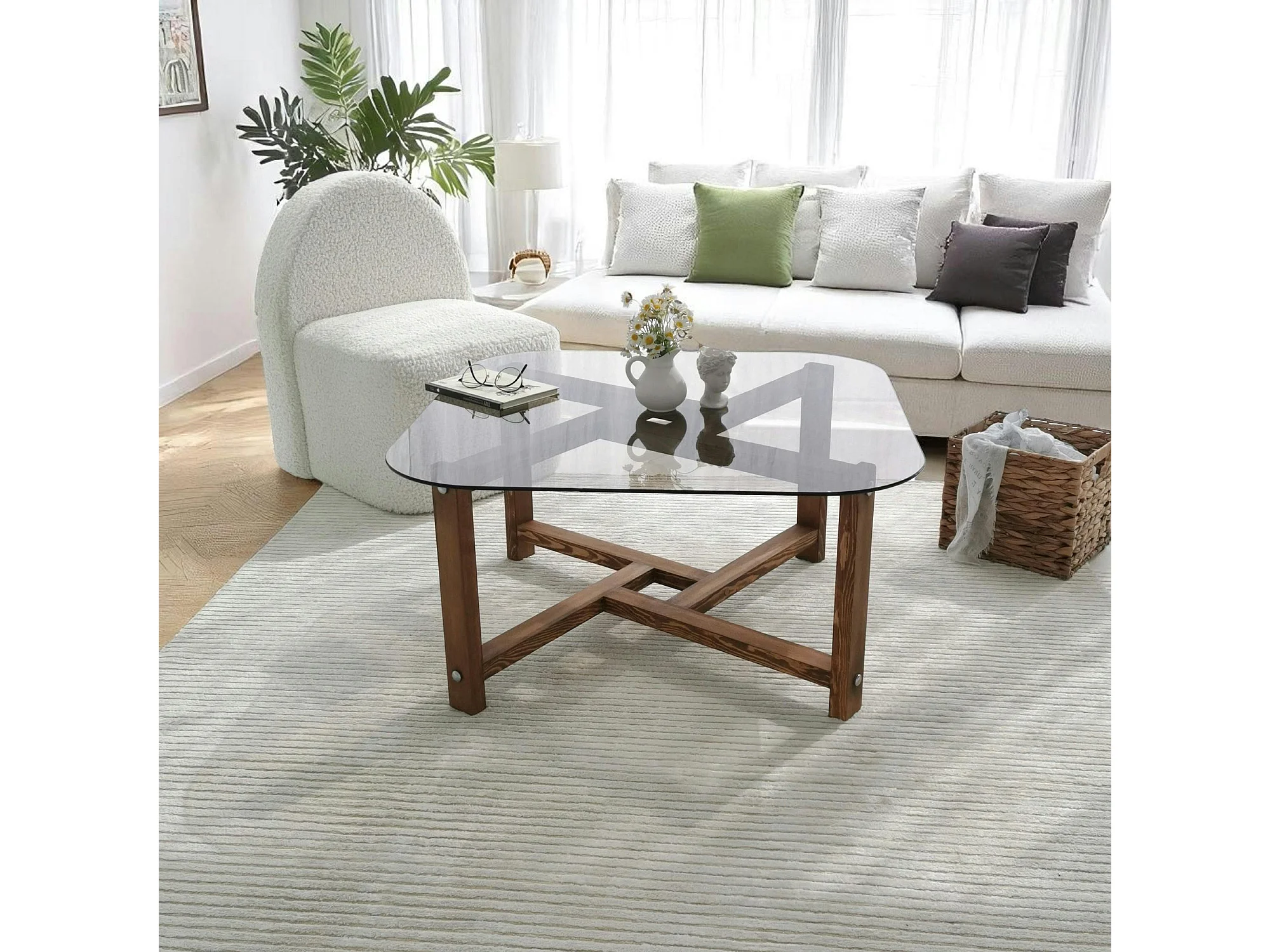 Table basse verre fumé et bois - forme carrée douce ANZIO