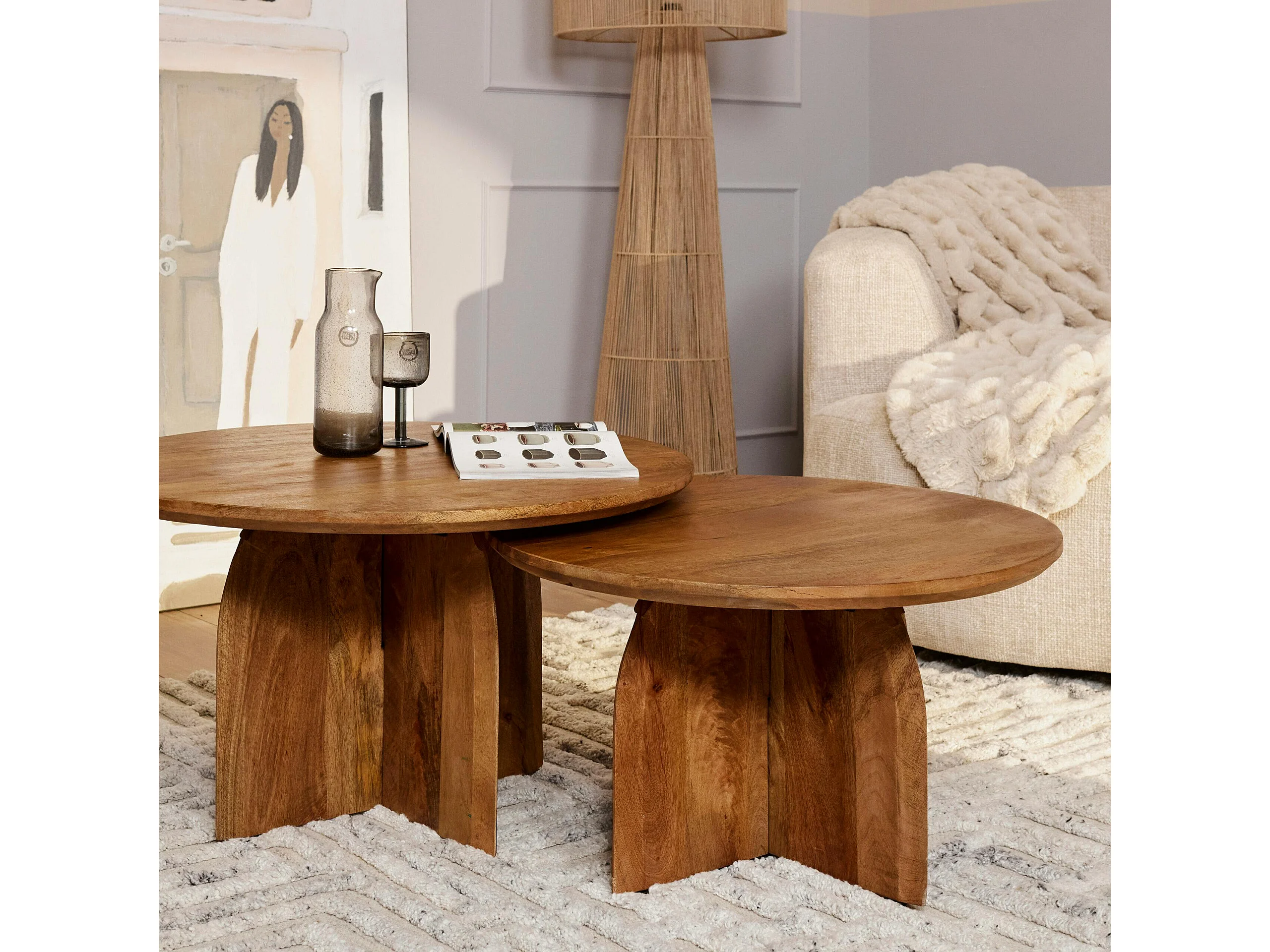 Table basse vintage en bois Ø70 cm CALDERA