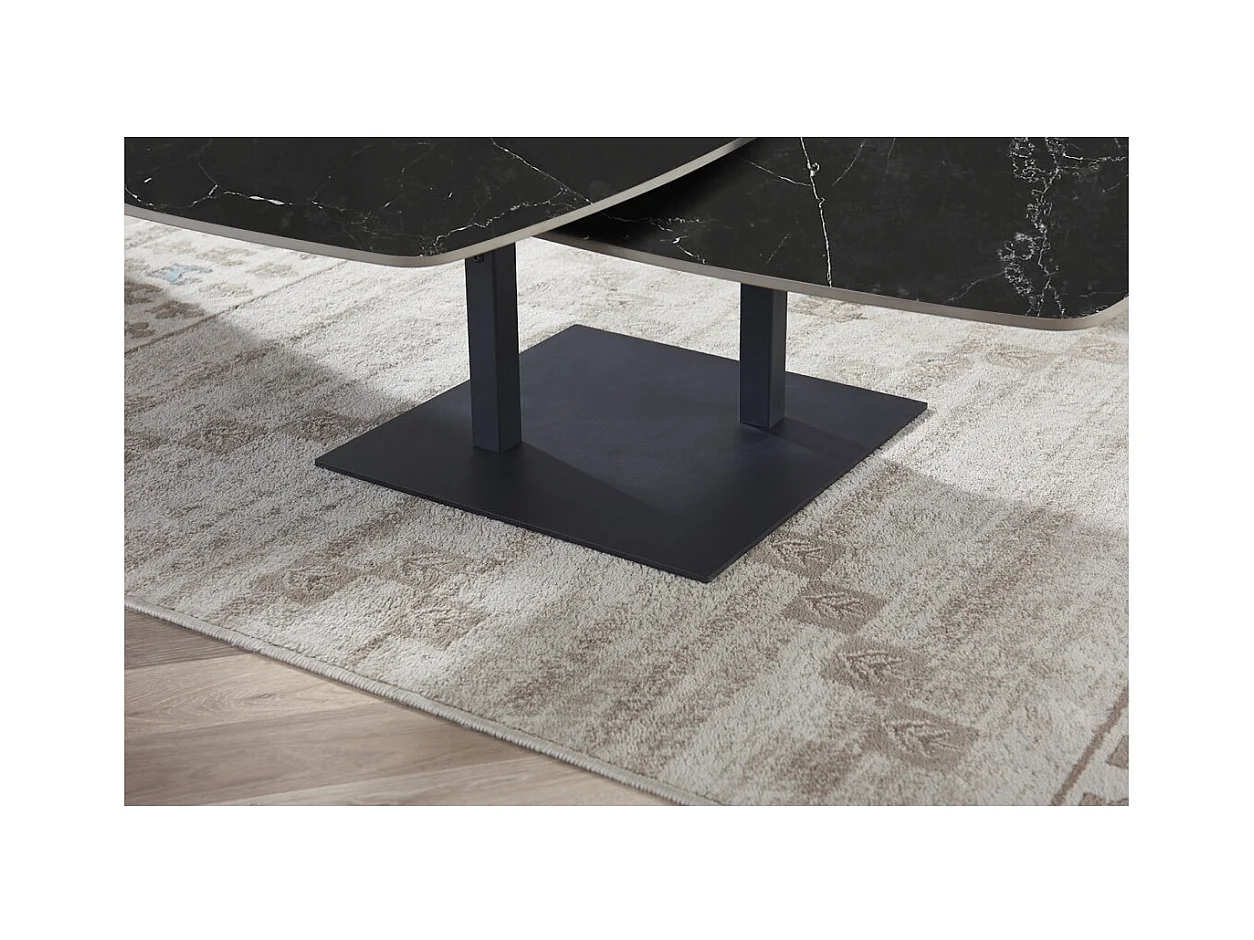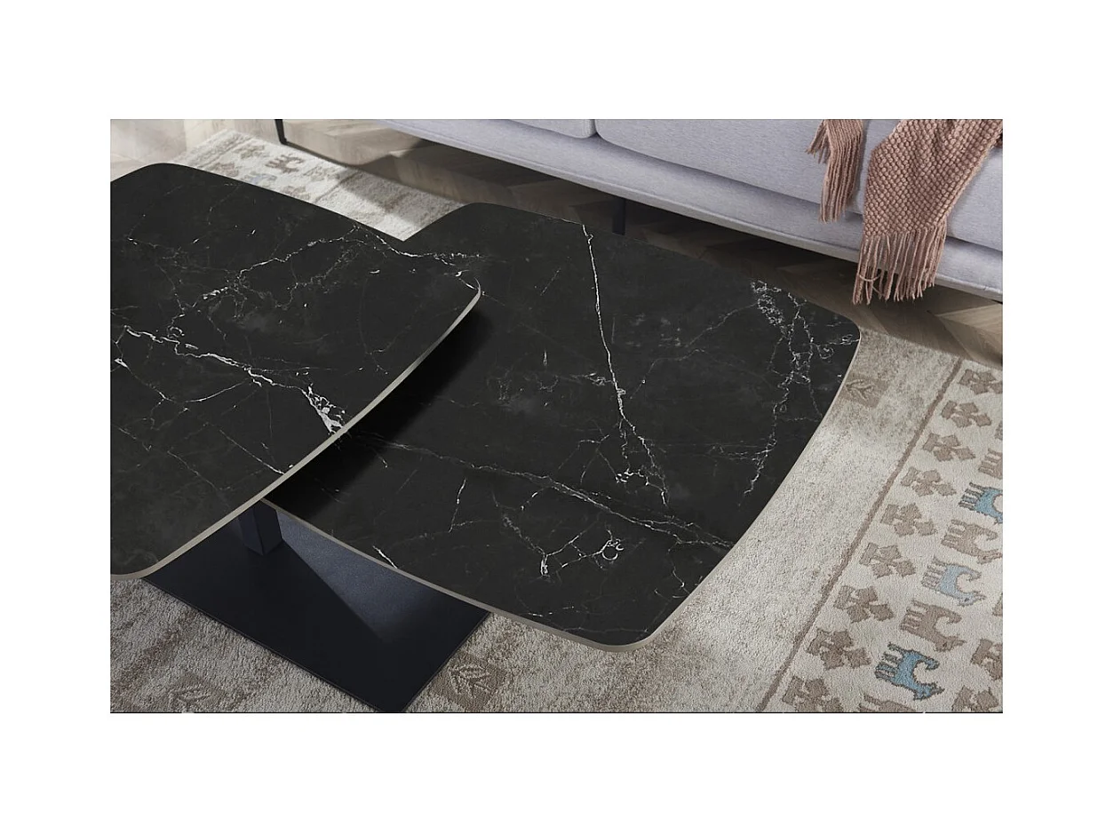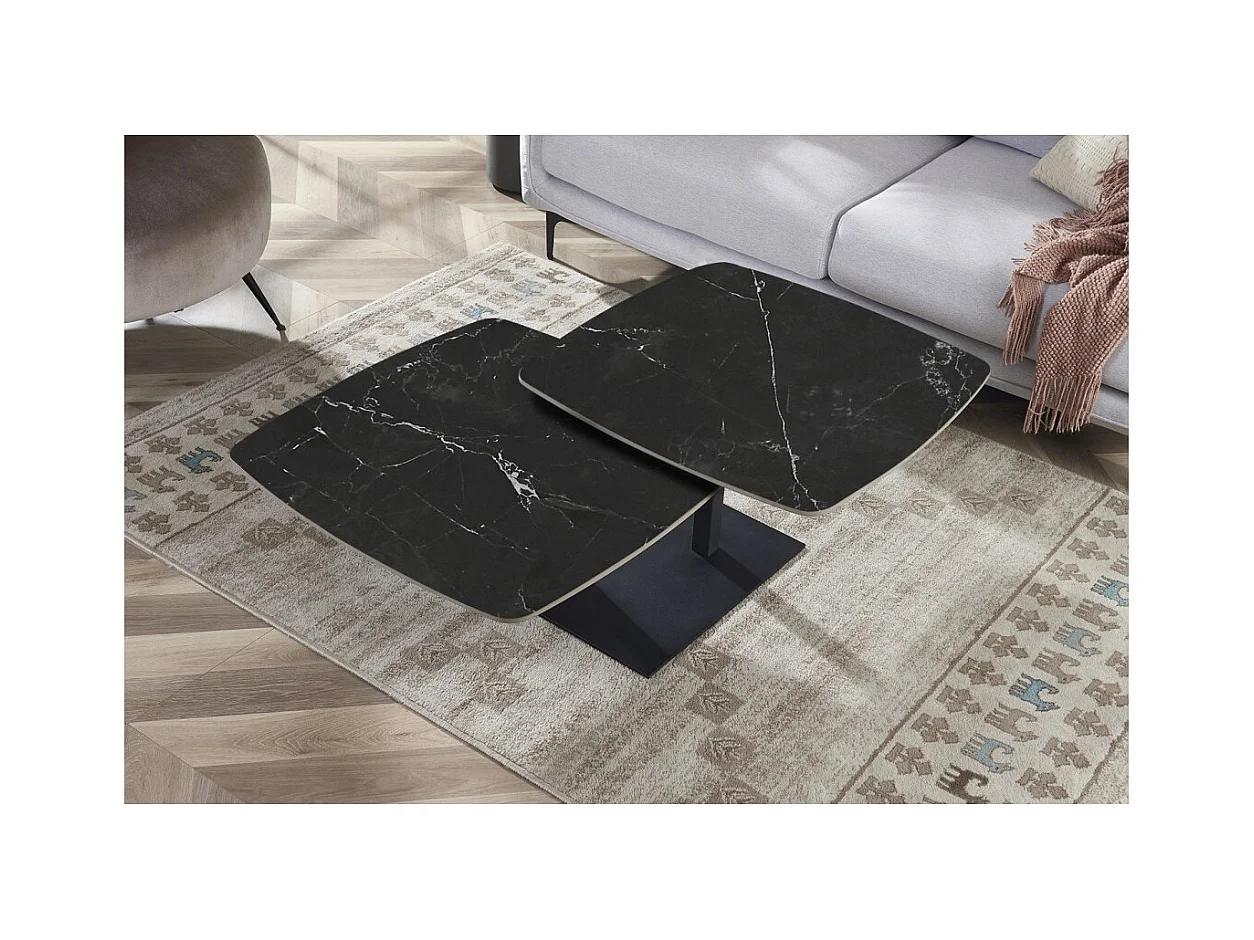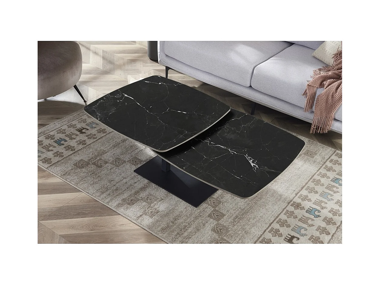 Table basse VIRELLO – Table basse ronde Ø70 cm – Pierre naturelle noire & métal – Design contemporain et sophistiqué