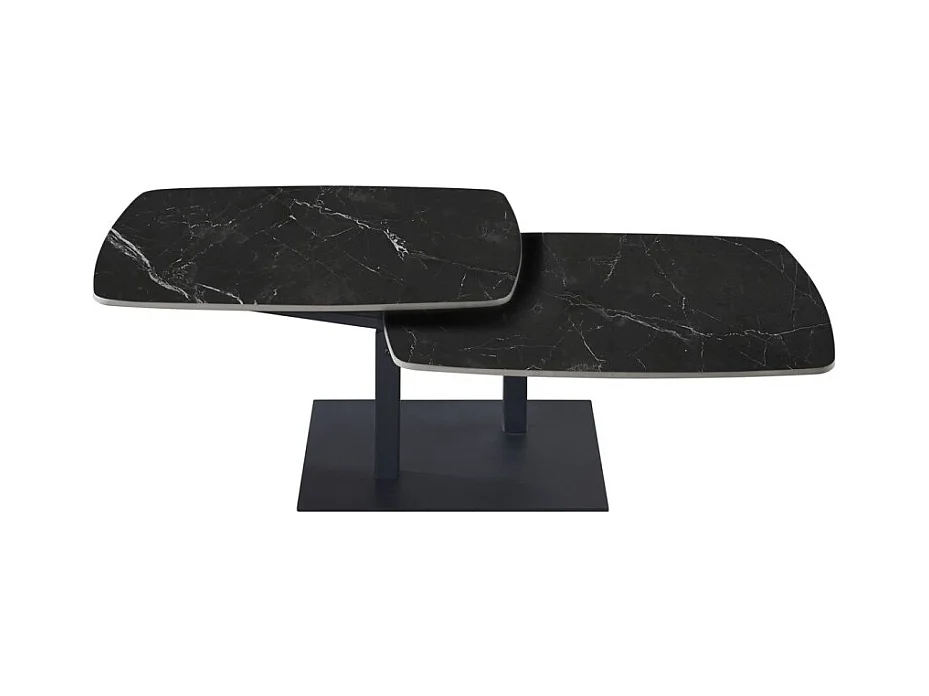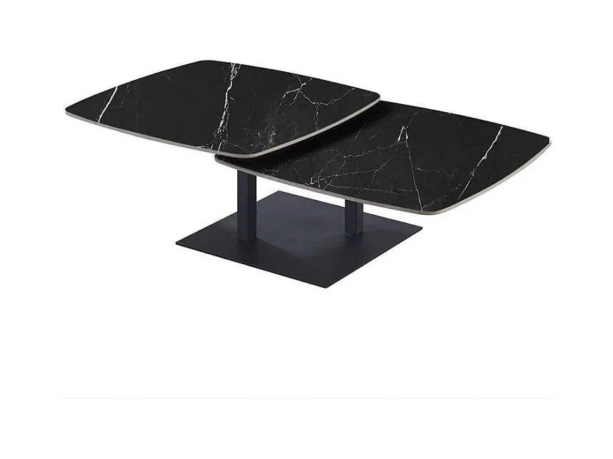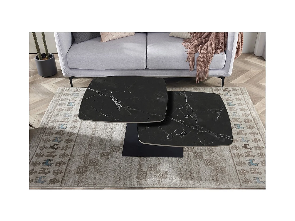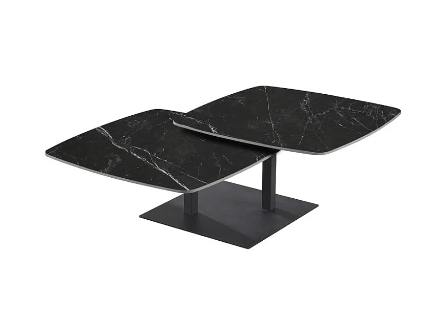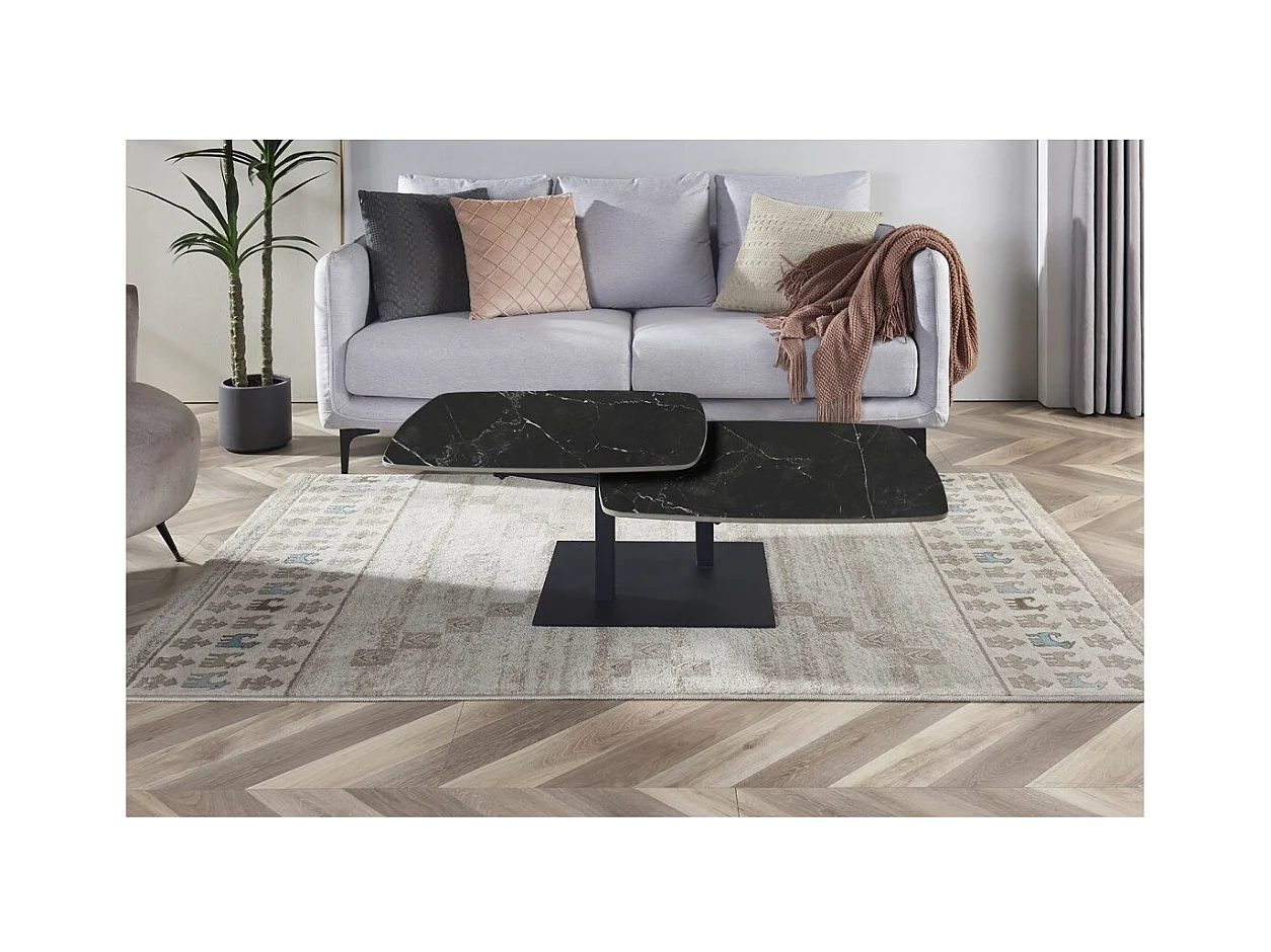 Table basse VIRELLO – Table basse ronde Ø70 cm – Pierre naturelle noire & métal – Design contemporain et sophistiqué