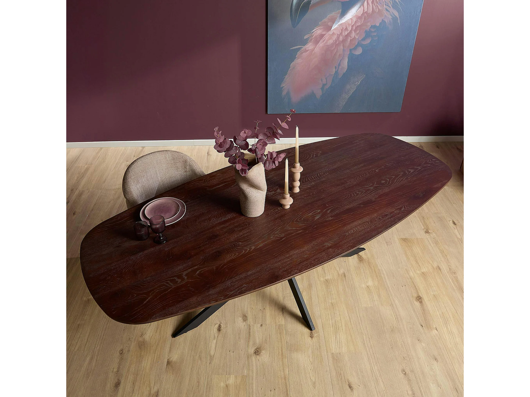 Table bords arrondis bois foncé 240 cm LEXTON