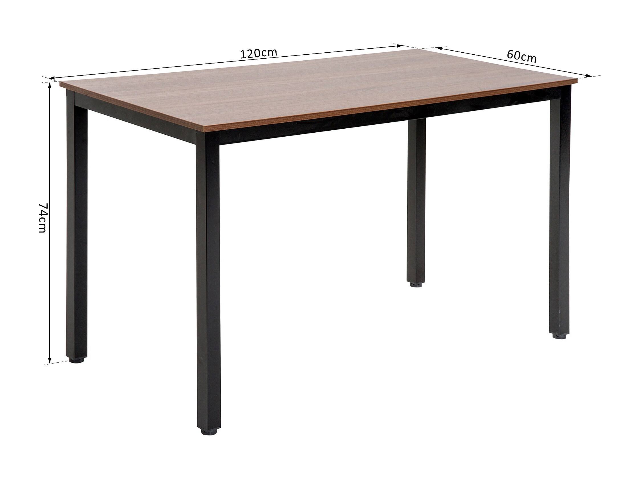 Table bureau informatique grand plateau 120L x 60l x 74H cm panneaux particules noyer métal noir