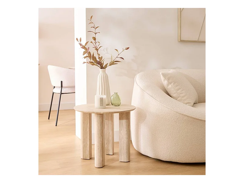 Table café Anaya D50,5 cm MDF effet travertin Atmosphera