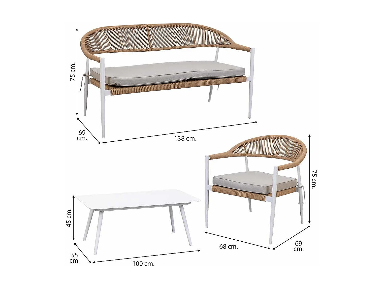 Table, canapé, 2 fauteuils multicolore 100x55x45, 68x69x75, 138x69x75