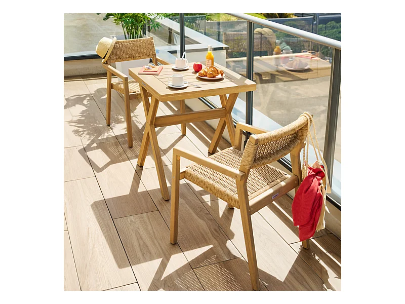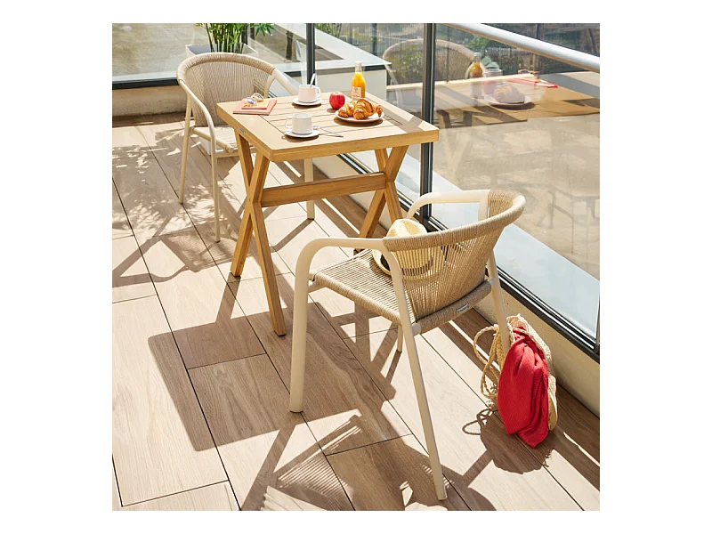 Table carrée fixe extérieure Xenia 2 places acacia Hespéride