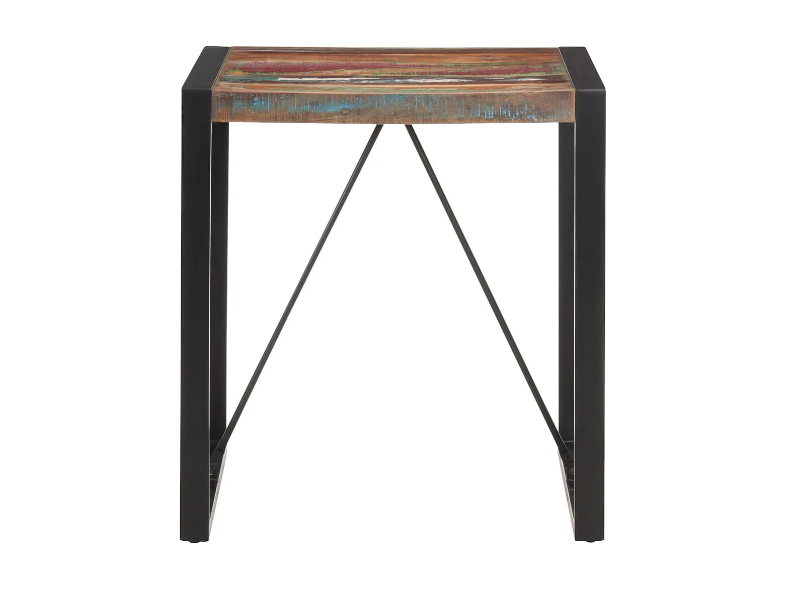 Table carrée industrielle bois recyclé massif et métal noir Vosa 70x70x75