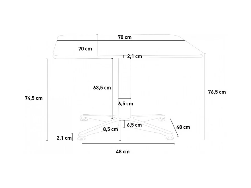 Table carrée pliante en aluminium pour bar et restaurant 70cm