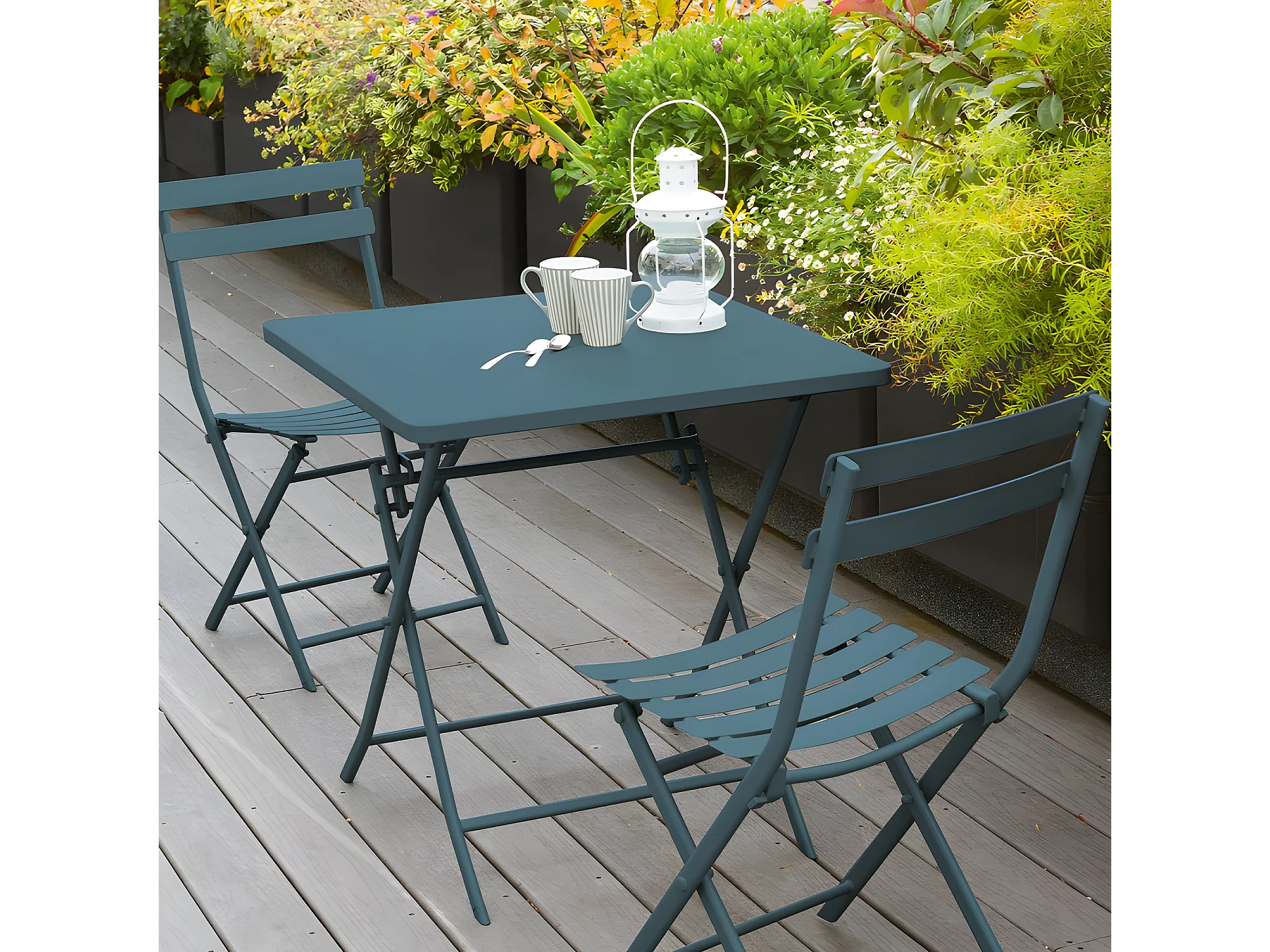 Table carrée pliante Greensboro 2p bleu canard Hespéride