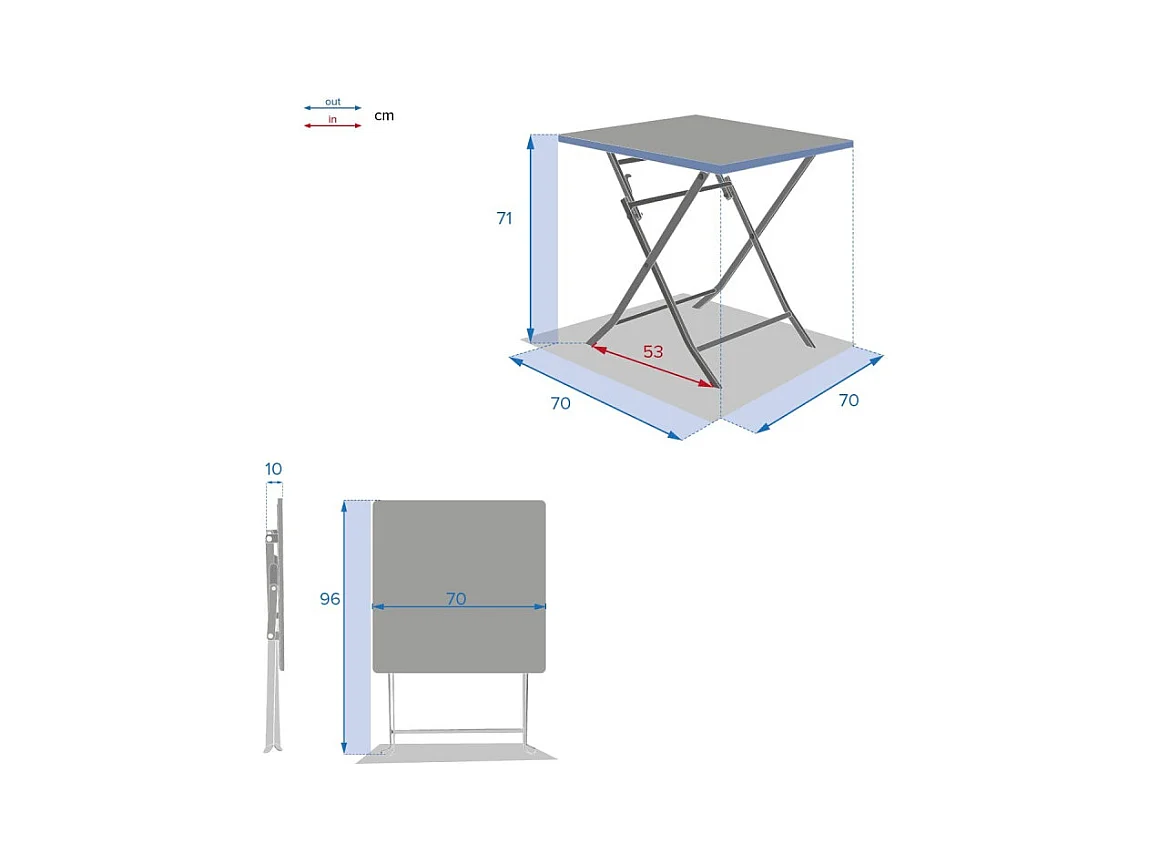 Table Repas Pliante Palerme Kaki 70x70x71cm Vert