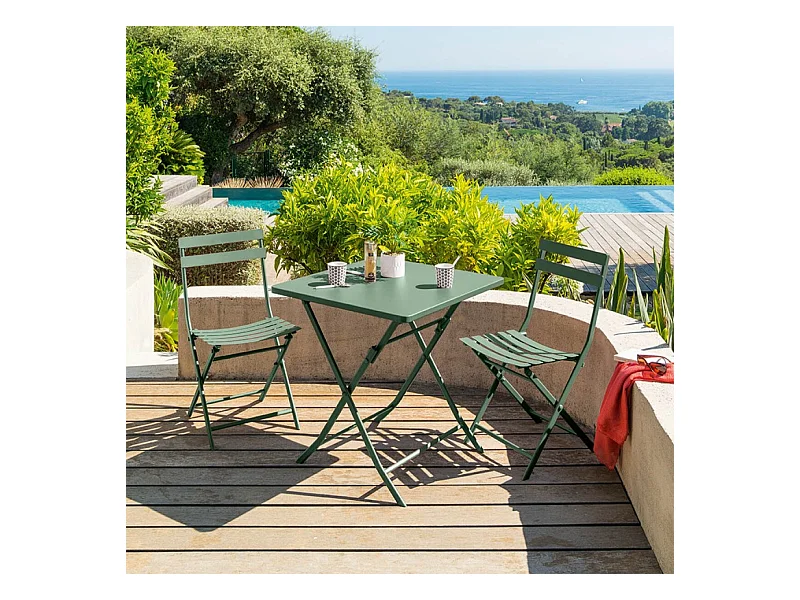Table carrée pliante Greensboro 2p vert olive Hespéride