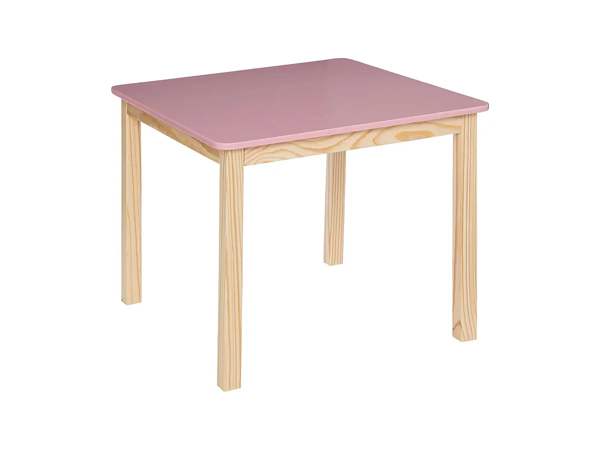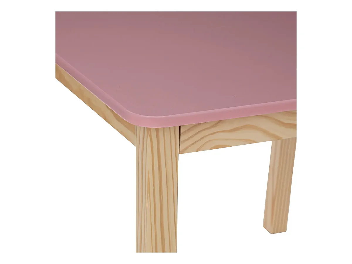 Table carrée pour chambre d'enfant en MDF/pin coloris rose/naturel