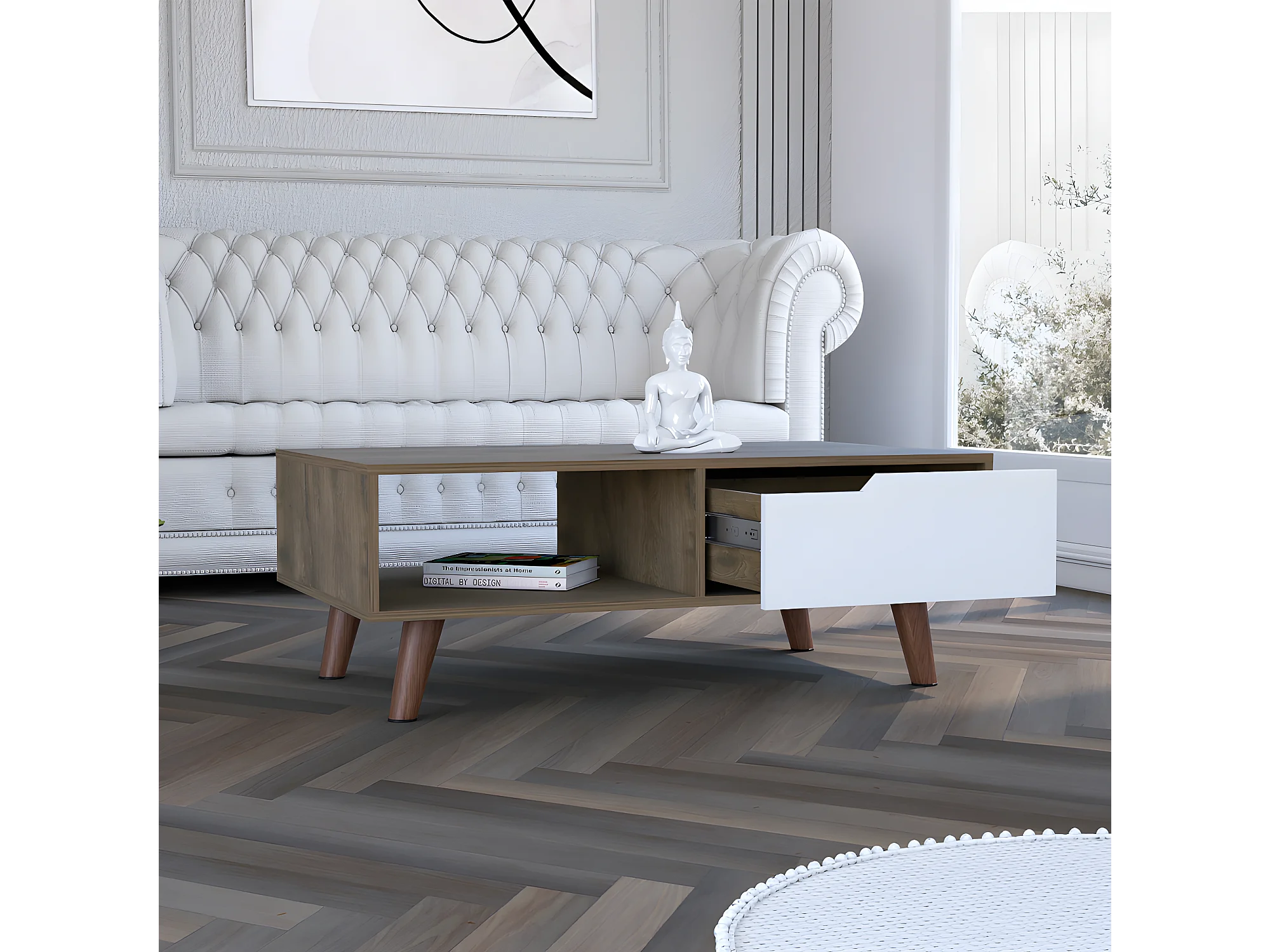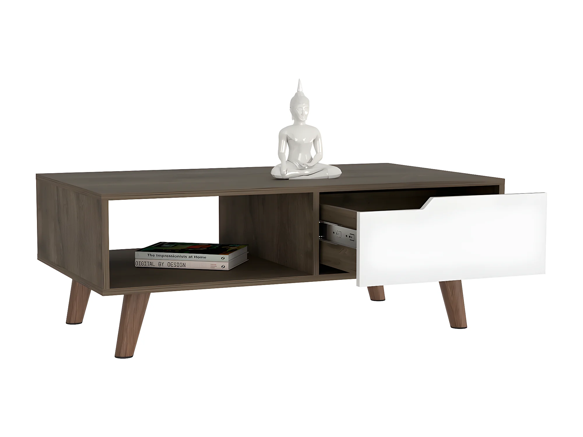 Table basse 85 cm blanc / table de salon en chêne avec rangements table basse