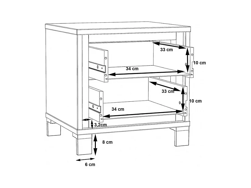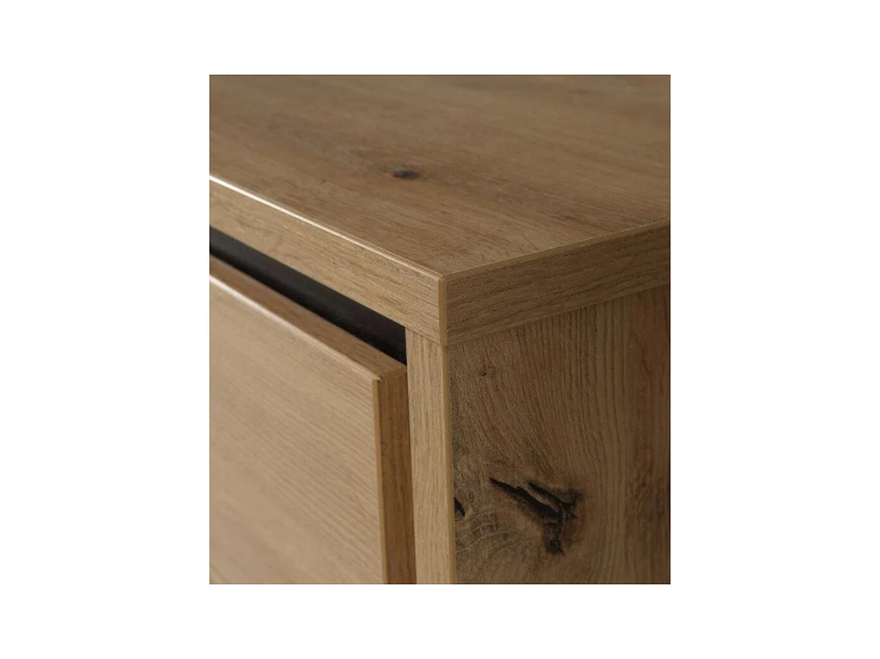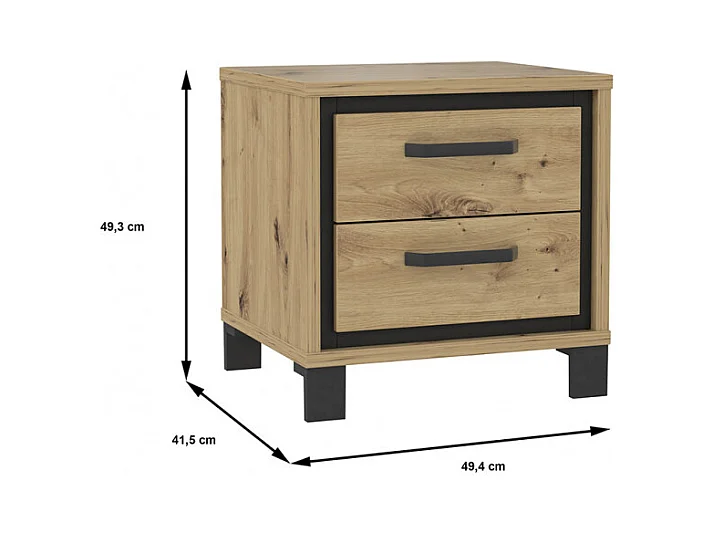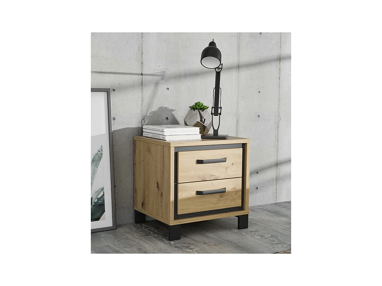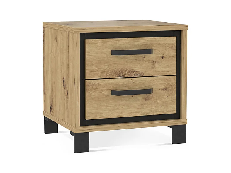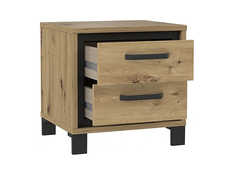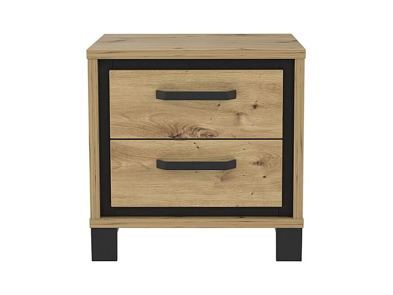 Table chevet 2 tiroirs décor chêne pieds poignées métal noir - ALIA