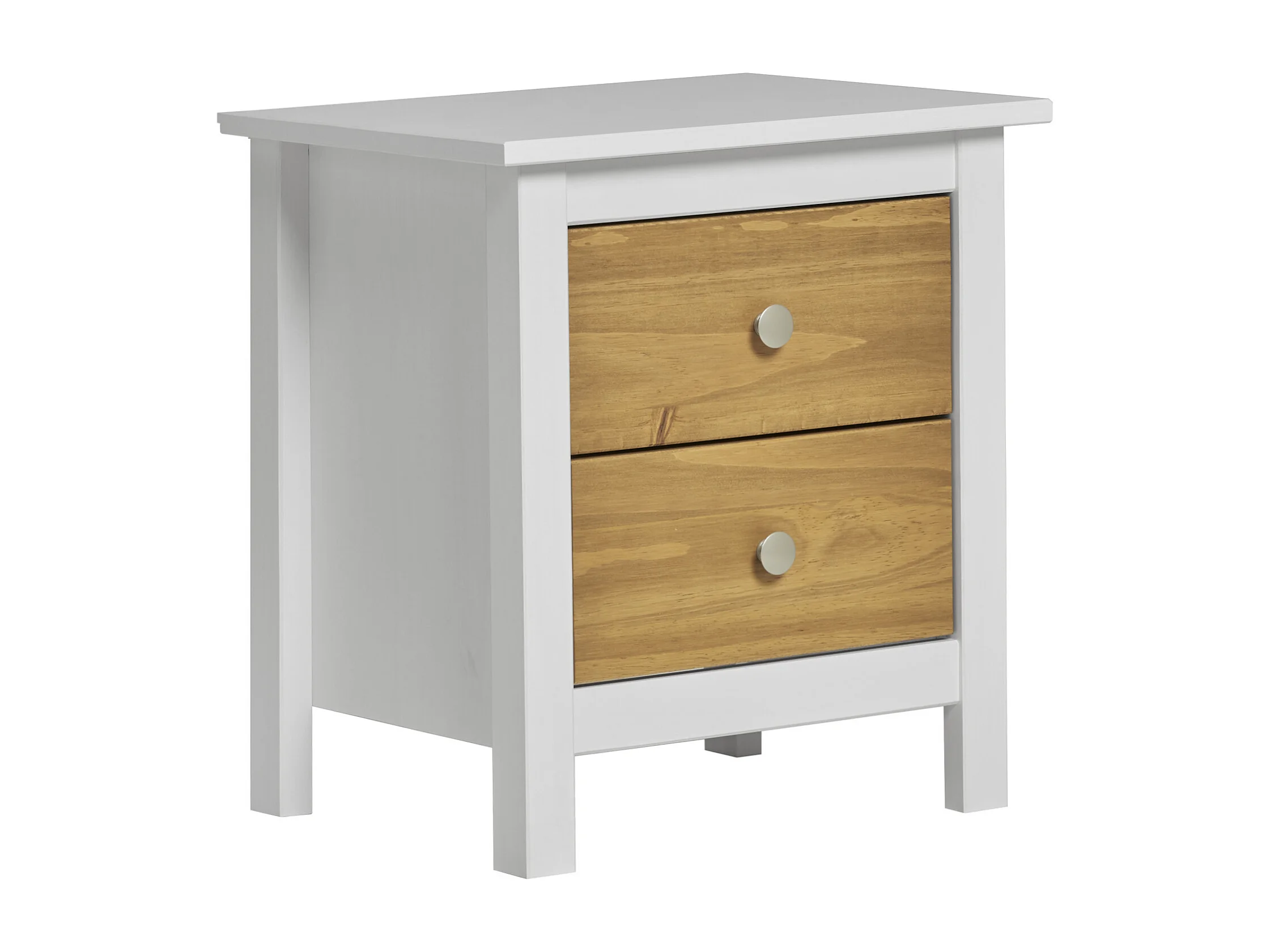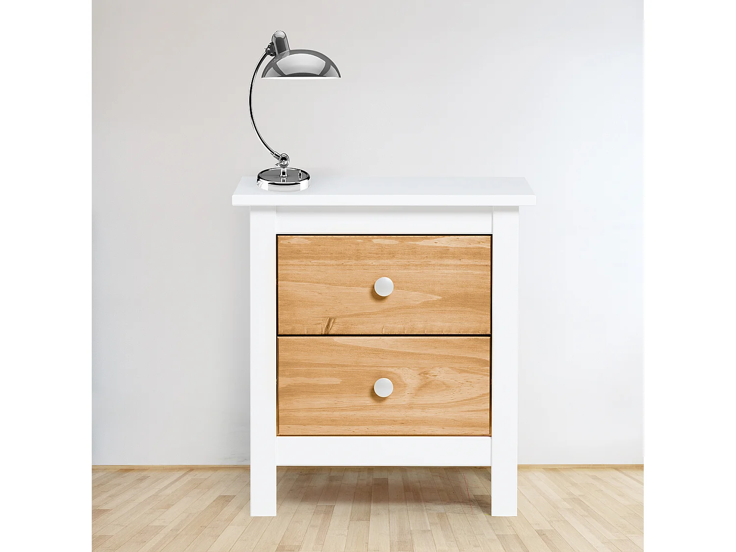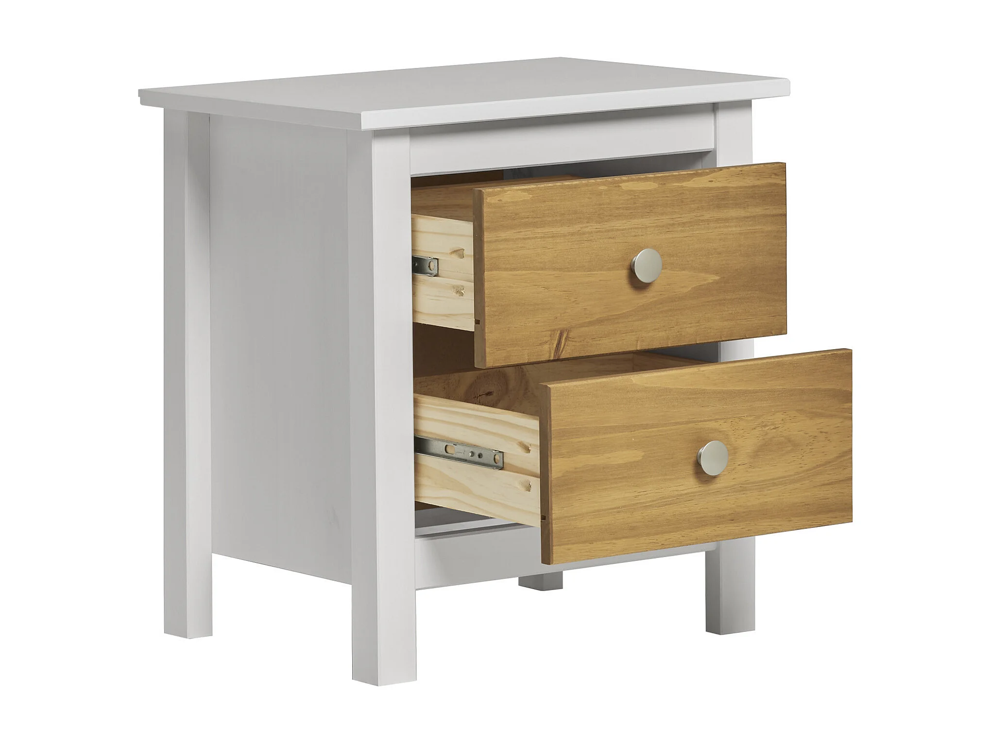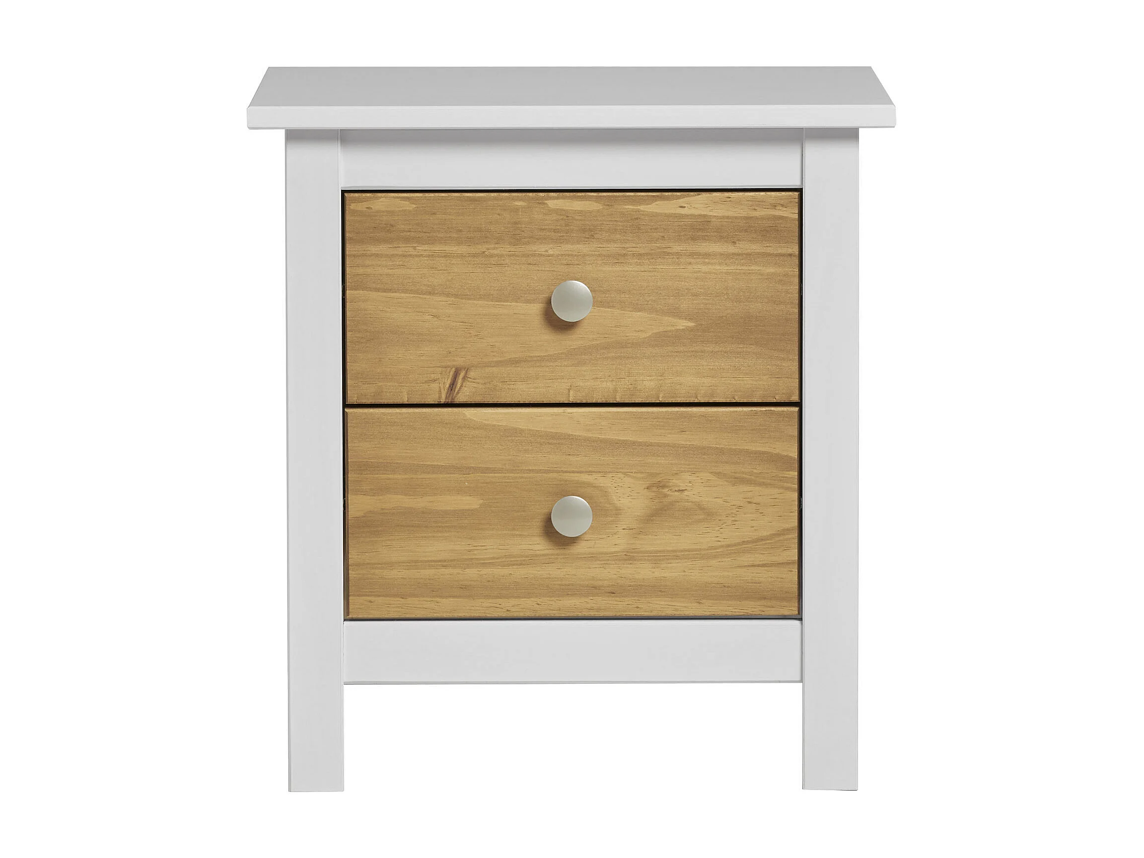 Table Chevet Bonnie Blanc 2 Tiroirs, Fabriqué en Bois de pin Massif