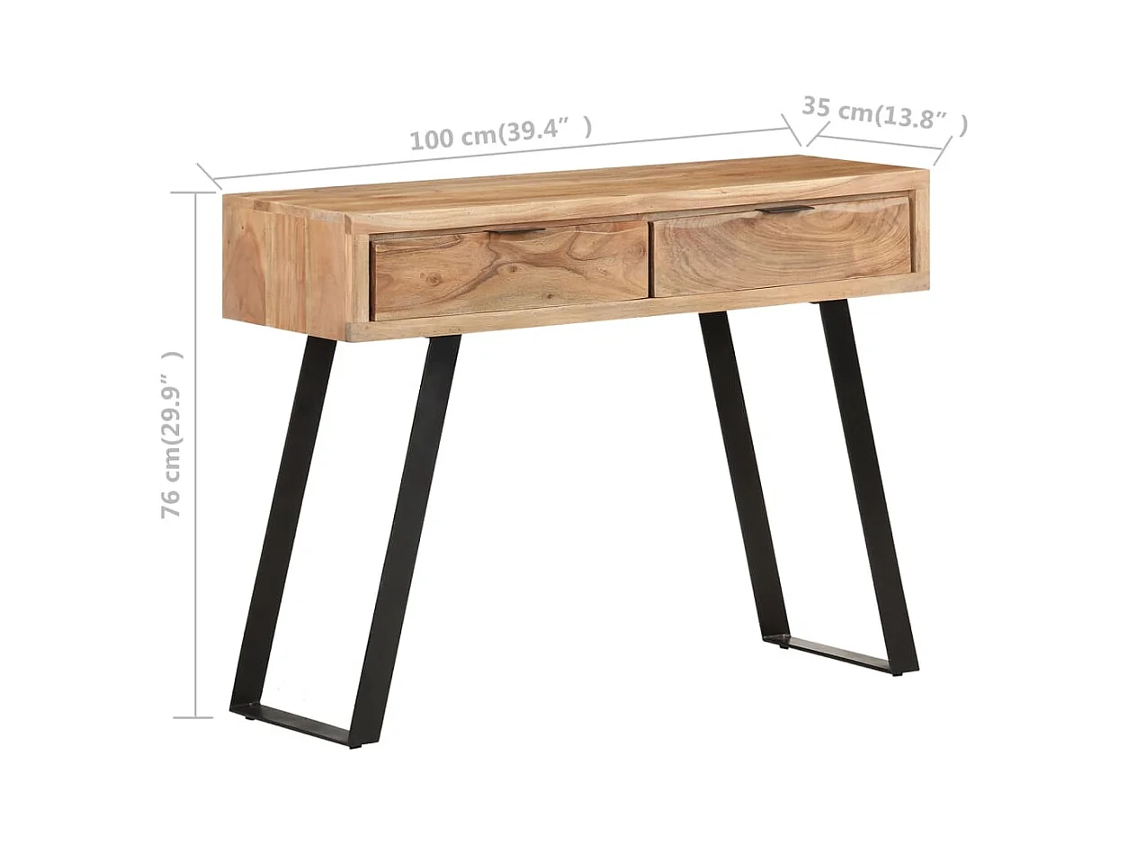 Table console 100x35x76 cm Bois d'acacia avec bord naturel