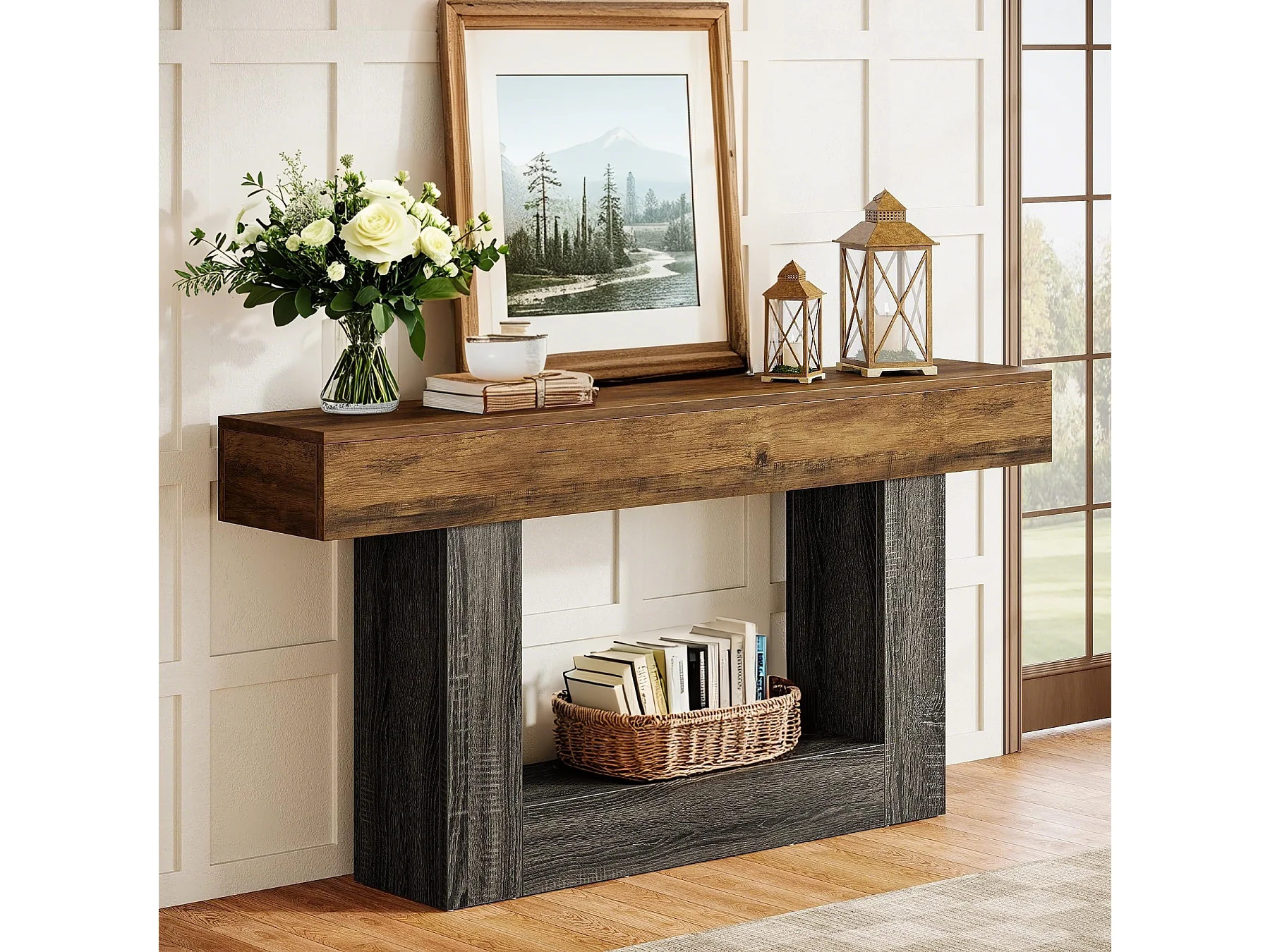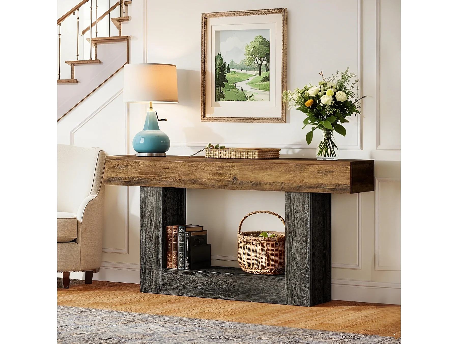 Table Console, 160 cm Table d'entrée, 2 Niveaux Table de canapé en Bois de Ferme avec Rangement pour Entrée, Chambre, Salon, Couloir, Marron Rustique