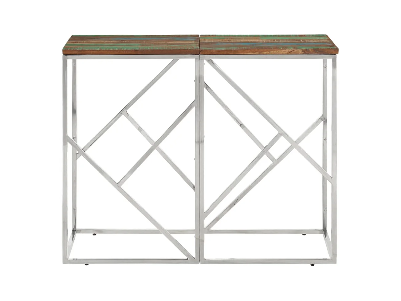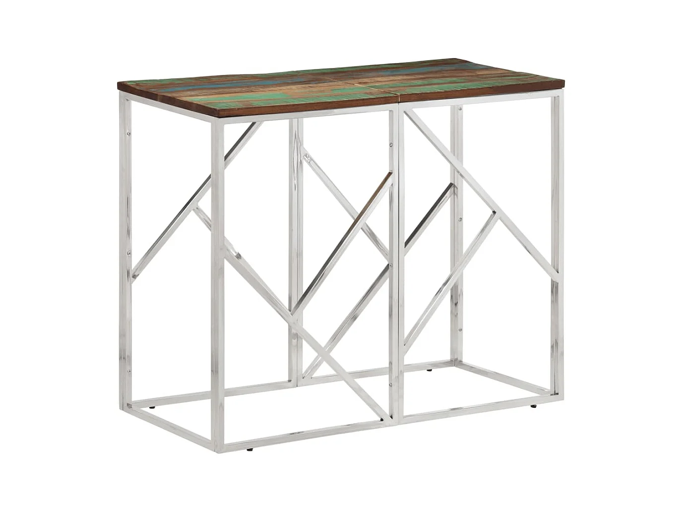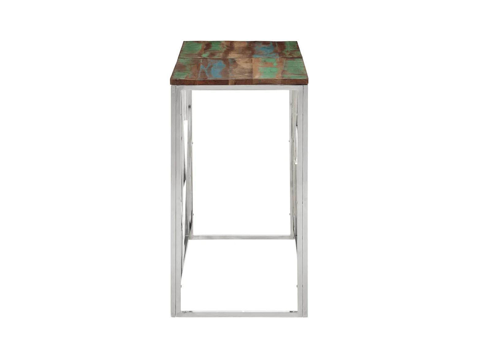 Table console argenté acier inoxydable et bois massif d'acacia GHR98768