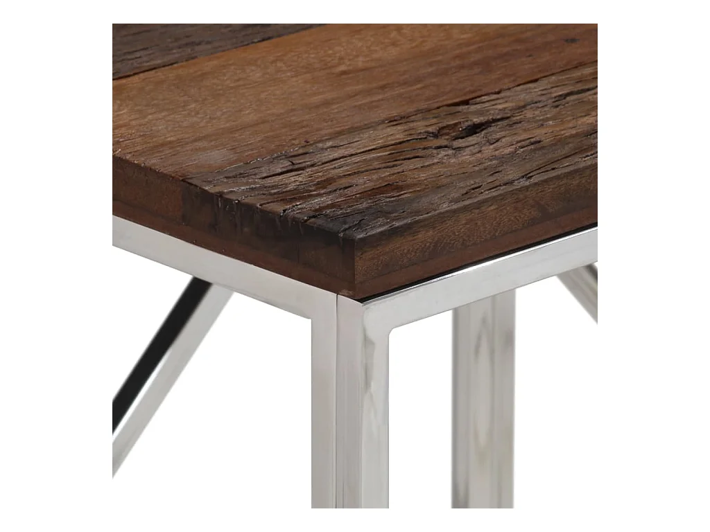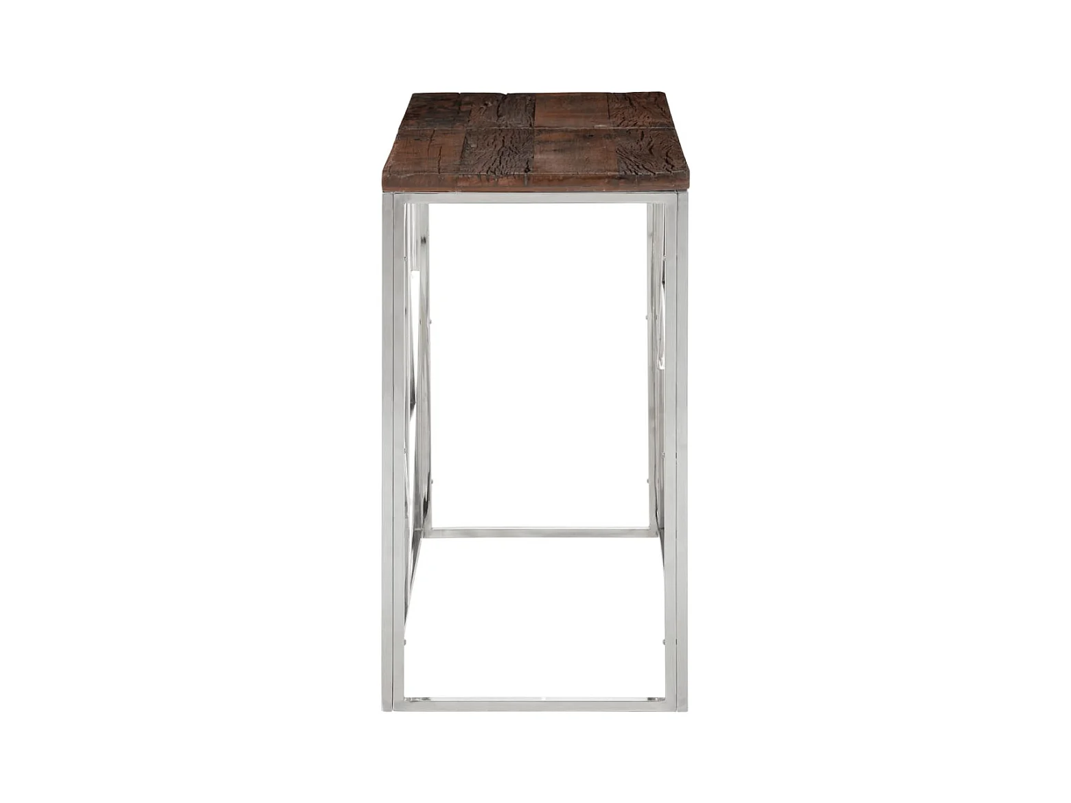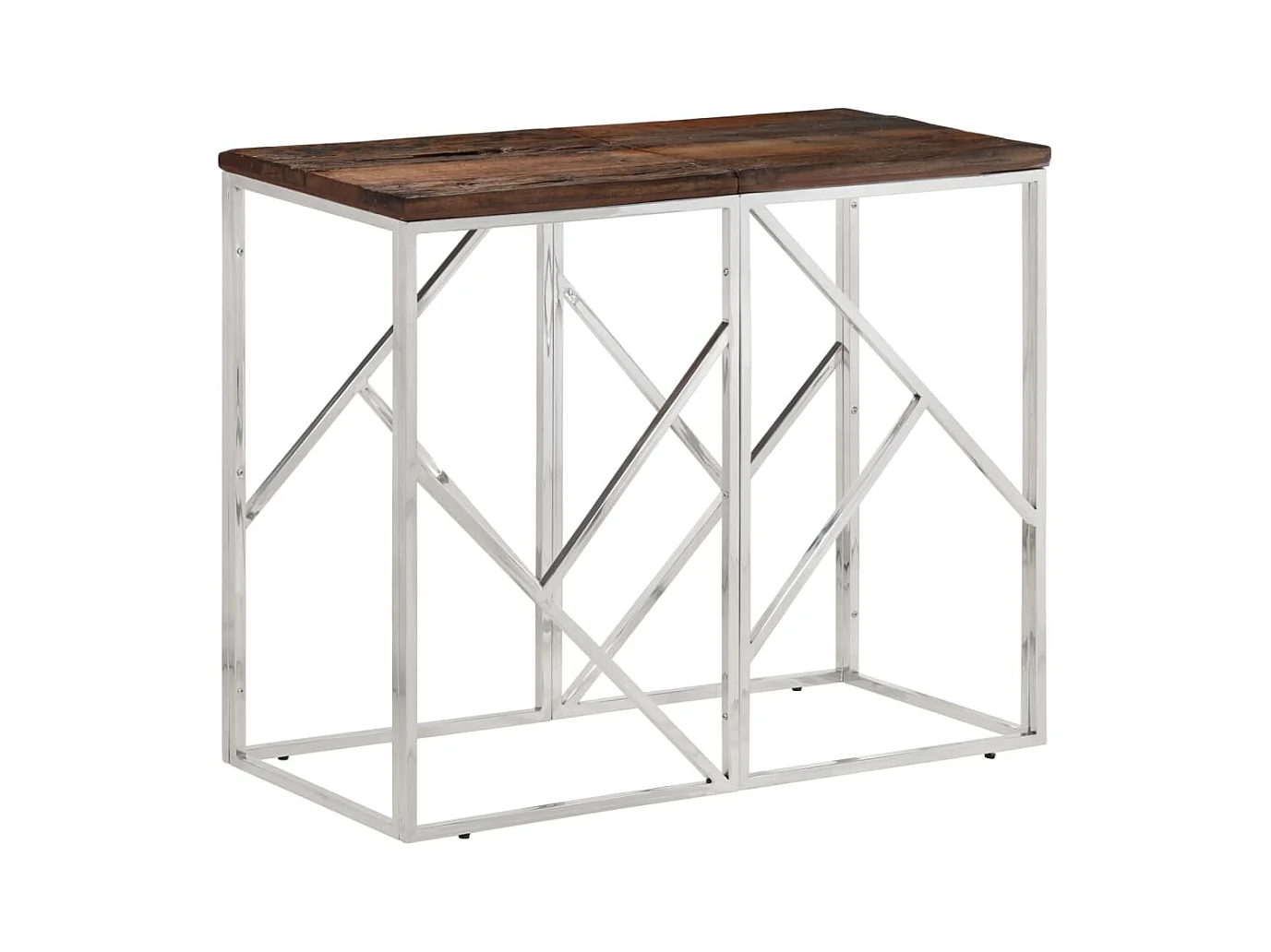 Table console argenté acier inoxydable et bois massif d'acacia GHR98768