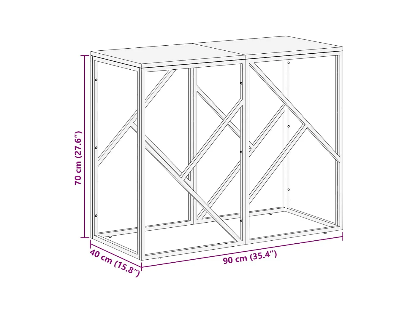 Table console miroir MDF et verre 106,5 x 38 x 76,5 cm